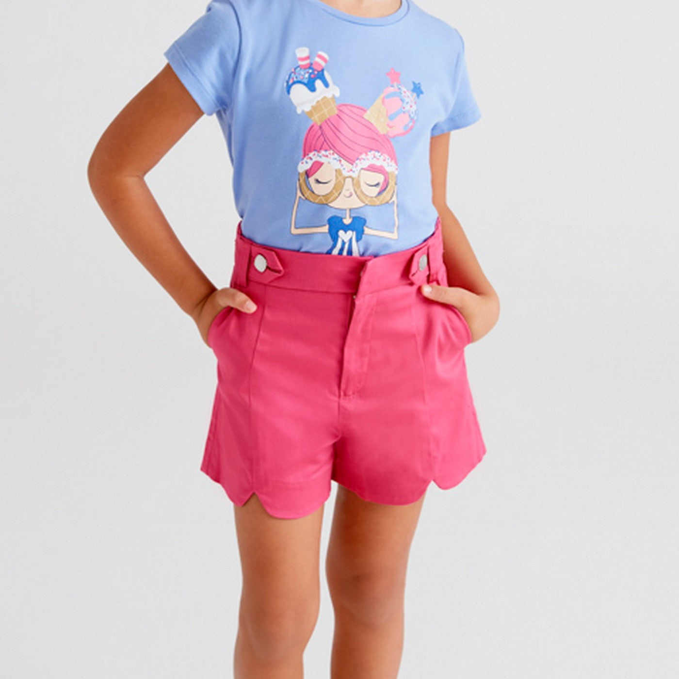Fuchsia Baumwollshorts mit Seitentaschen.