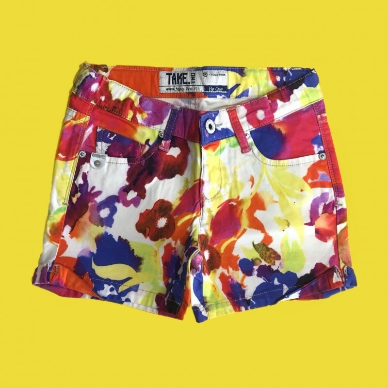 Mit mehrfarbigen Blumen bedruckte Baumwollshorts