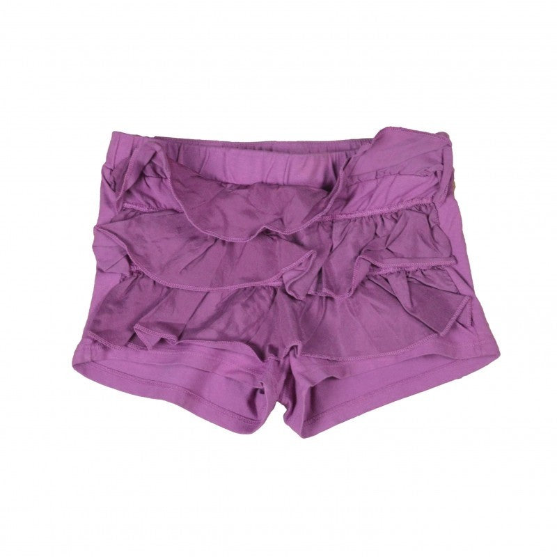 -Short aus einfarbiger lila Baumwollmischung mit Volants
