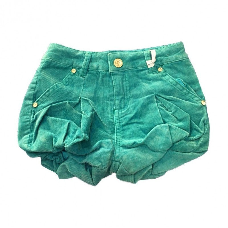 -Shorts aus schlichtem, wassergrünem Samt, America-Taschen und elastischem Innenfutter, mit dem Sie die Passform anpassen können