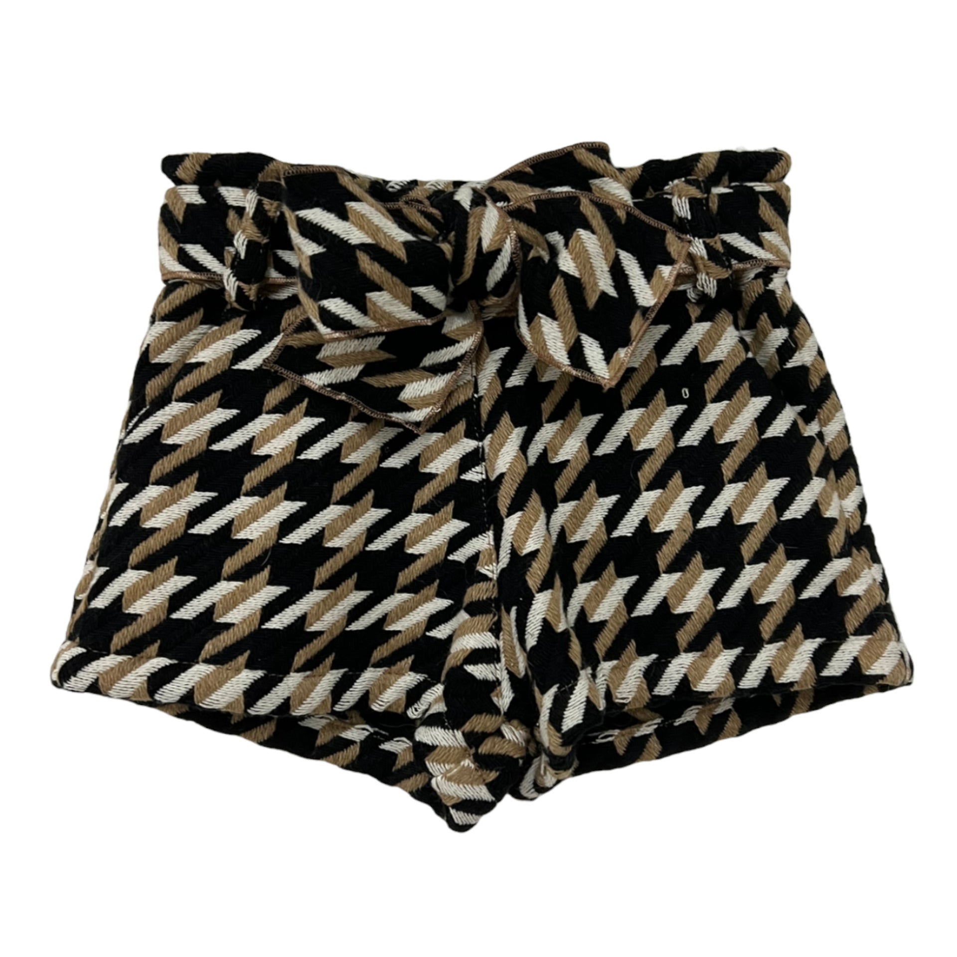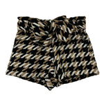 Short in panno(caldo cotone) fantasia pied de poule (nero/beige scuro/panna),modello vita alta con elastico in vita da creare effetto arricciatura