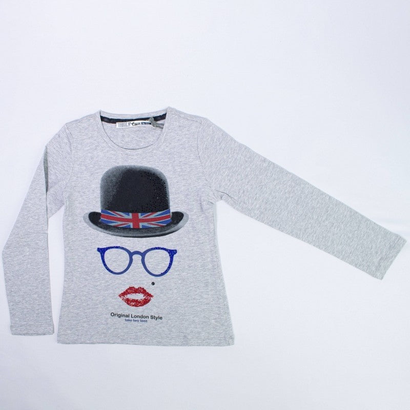 Warmes T-Shirt aus Stretch-Baumwolle in einfarbigem Grau mit London-Print auf der Vorderseite