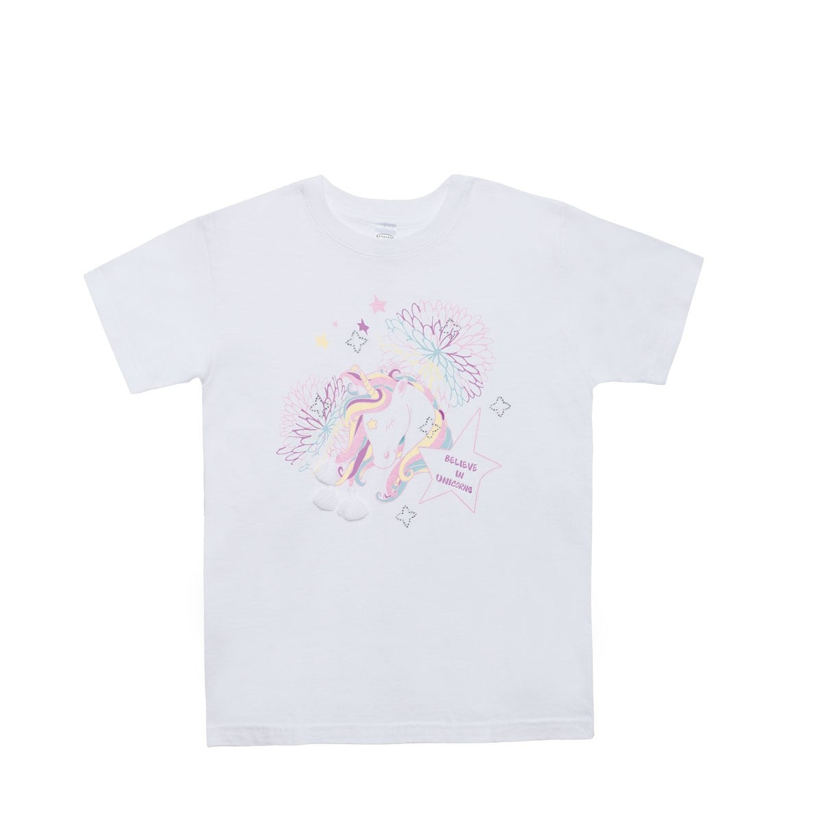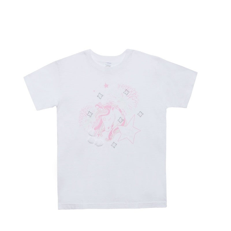Halbarm-T-Shirt aus weißer Baumwolle mit Chamäleon-Print, der in der Sonne seine Farbe ändert.