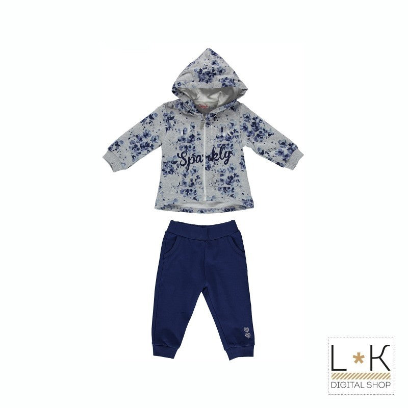 - Graue Anzugjacke mit Kapuze und blauem Blumendruck