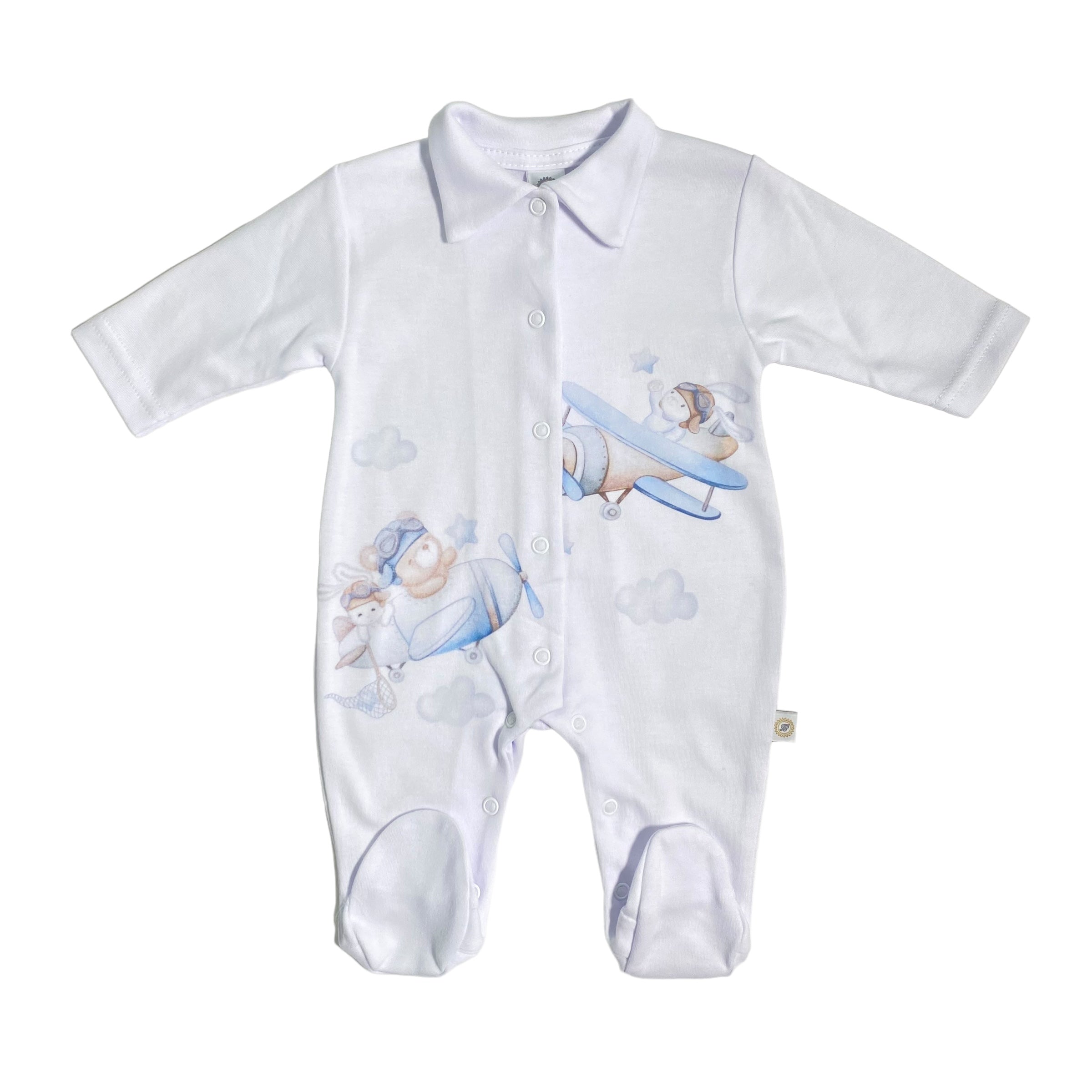 Questa tutina intera in cotone è perfetta per il tuo neonato/a! Con una stampa romantica e unisex di aereoplano e un comodo collo tondo, questa tutina è una scelta versatile per il corredino del tuo bambino/a. La chiusura sul davanti rende il cambio pannolino facile e veloce.