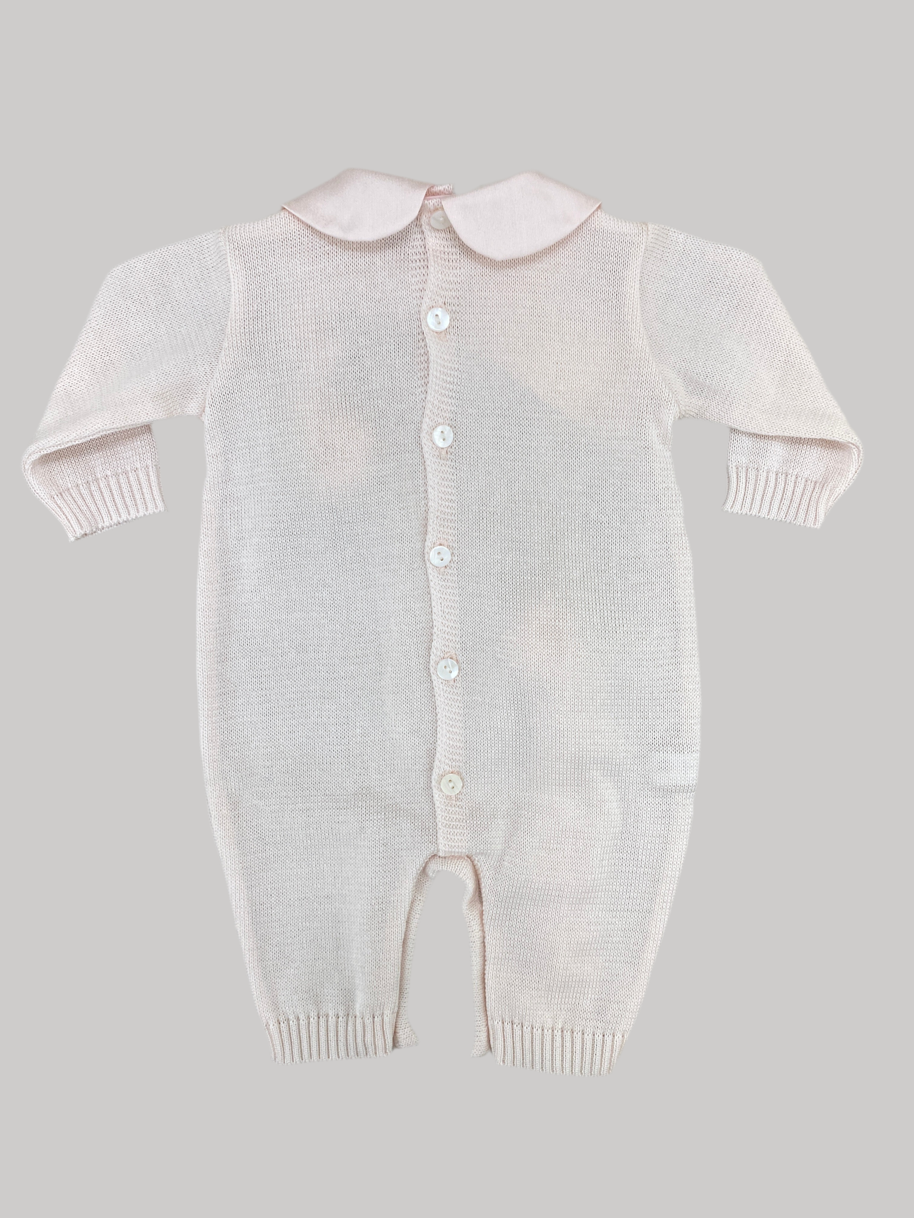 Realizzata in filo di cotone, questa elegante tutina intera per neonate BIMBALO' presenta traforature e un grazioso fiore. Perfetta per l'uscita clinica e realizzata con materiali di alta qualità, garantirà il massimo comfort per la tua bambina.