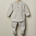 Questa tutina intera in filo per neonati è perfetta per mantenere il tuo bambino comodo. Il design elegante e delicato offre un'ampia libertà di movimento e il tessuto in filo di alta qualità offre un tocco di poise e rilievo per aggiungere un tocco elegante alla tutina.