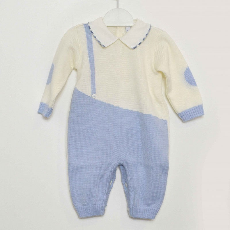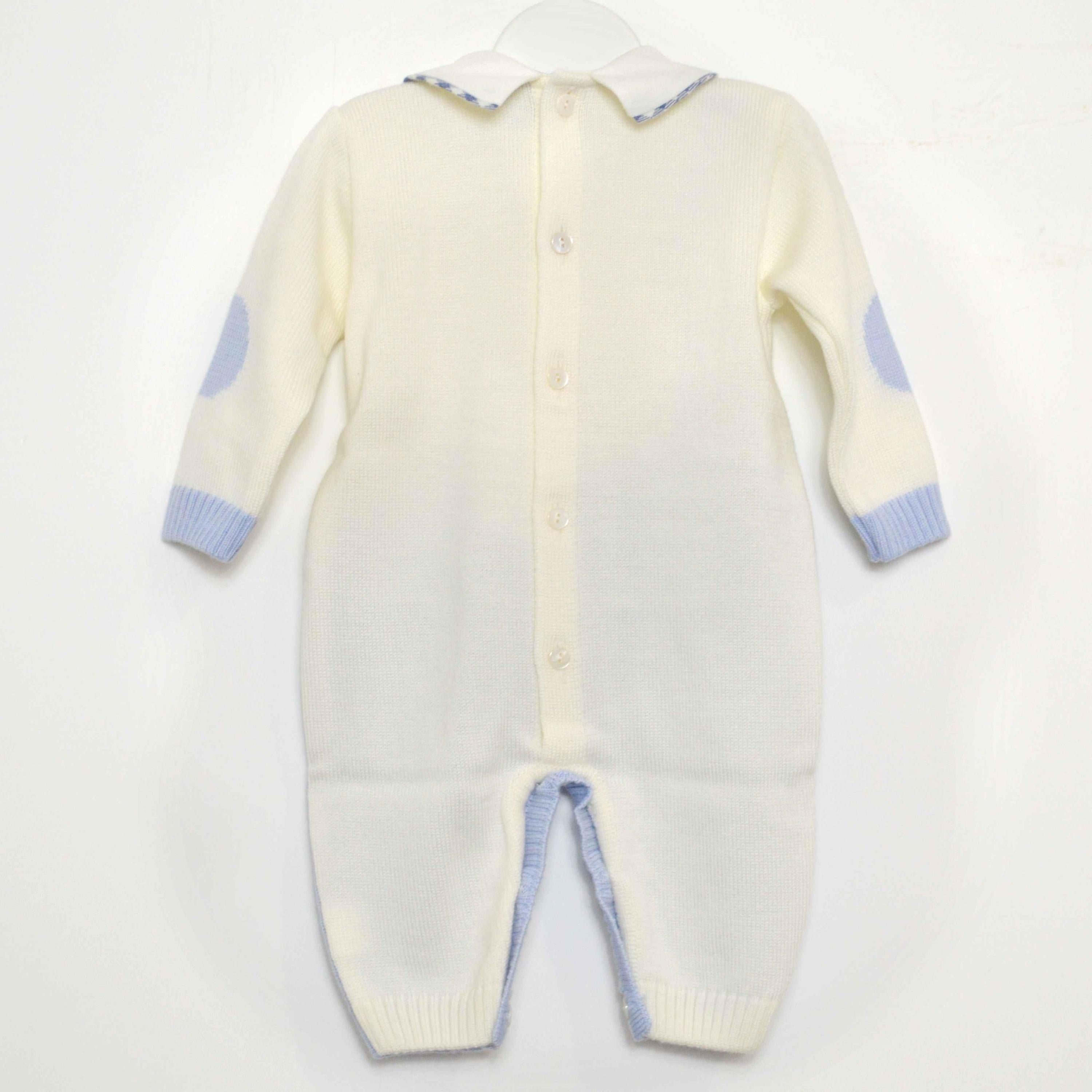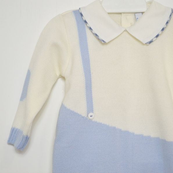 Ganzer Anzug aus cremefarbener und hellblauer Titna-Wolle.