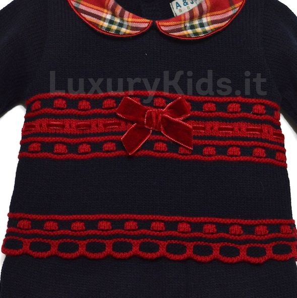 -Rot bestickte Bündchen und Taille und Samtschleife in der Mitte
