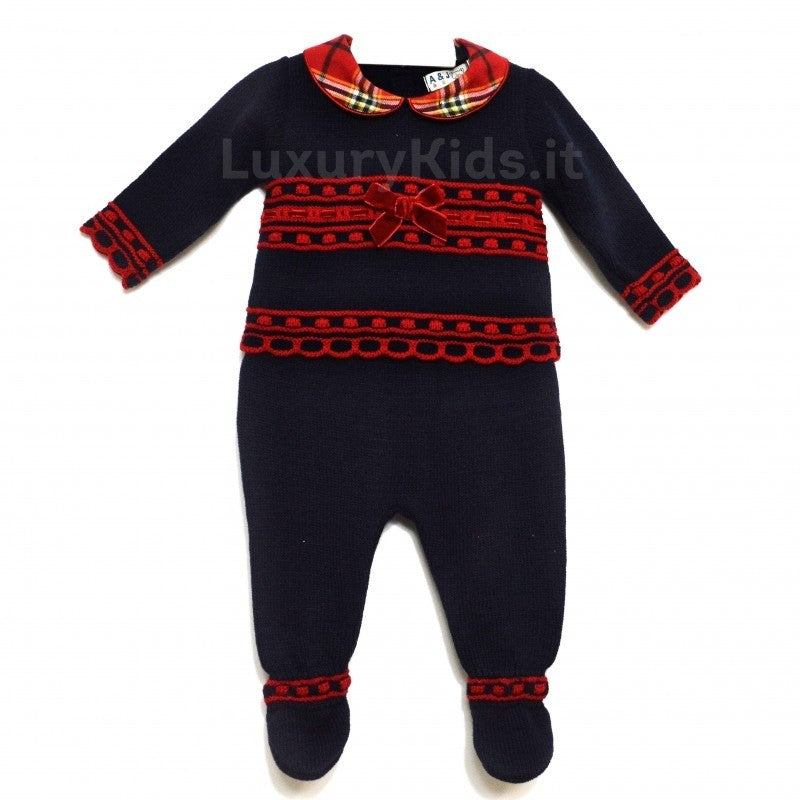-Zerbrochener Body aus blauem und rotem hypoallergenem Stoff mit langen Ärmeln