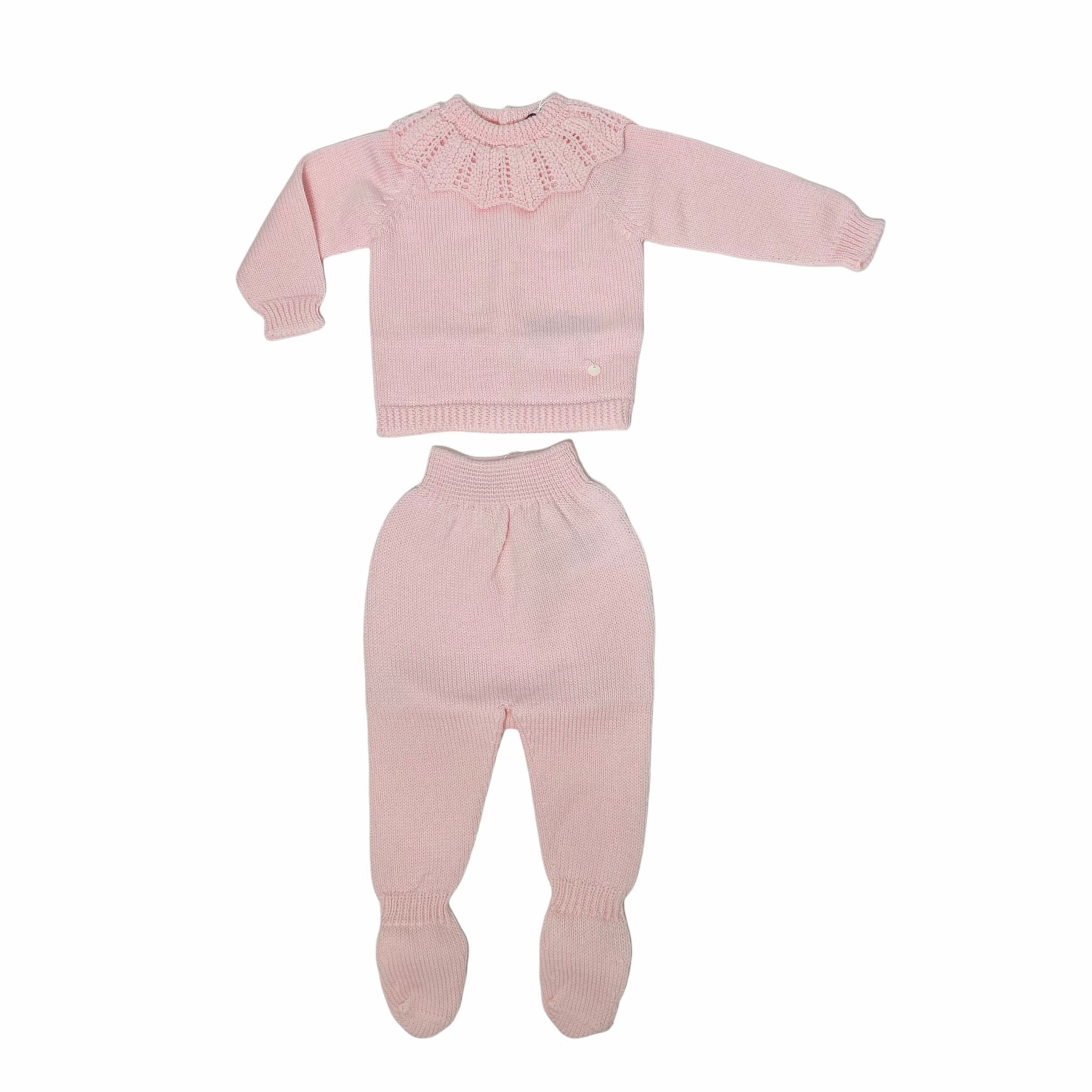 Warmer gebrochener Einteiler aus 100 % Wolle besteht aus einer Gamasche mit Füßen und Gummizug in der Taille und einem langärmligen T-Shirt mit Rückenverschluss mit Rundhalsausschnitt und einem bestickten Kragen mit Verzierungen.