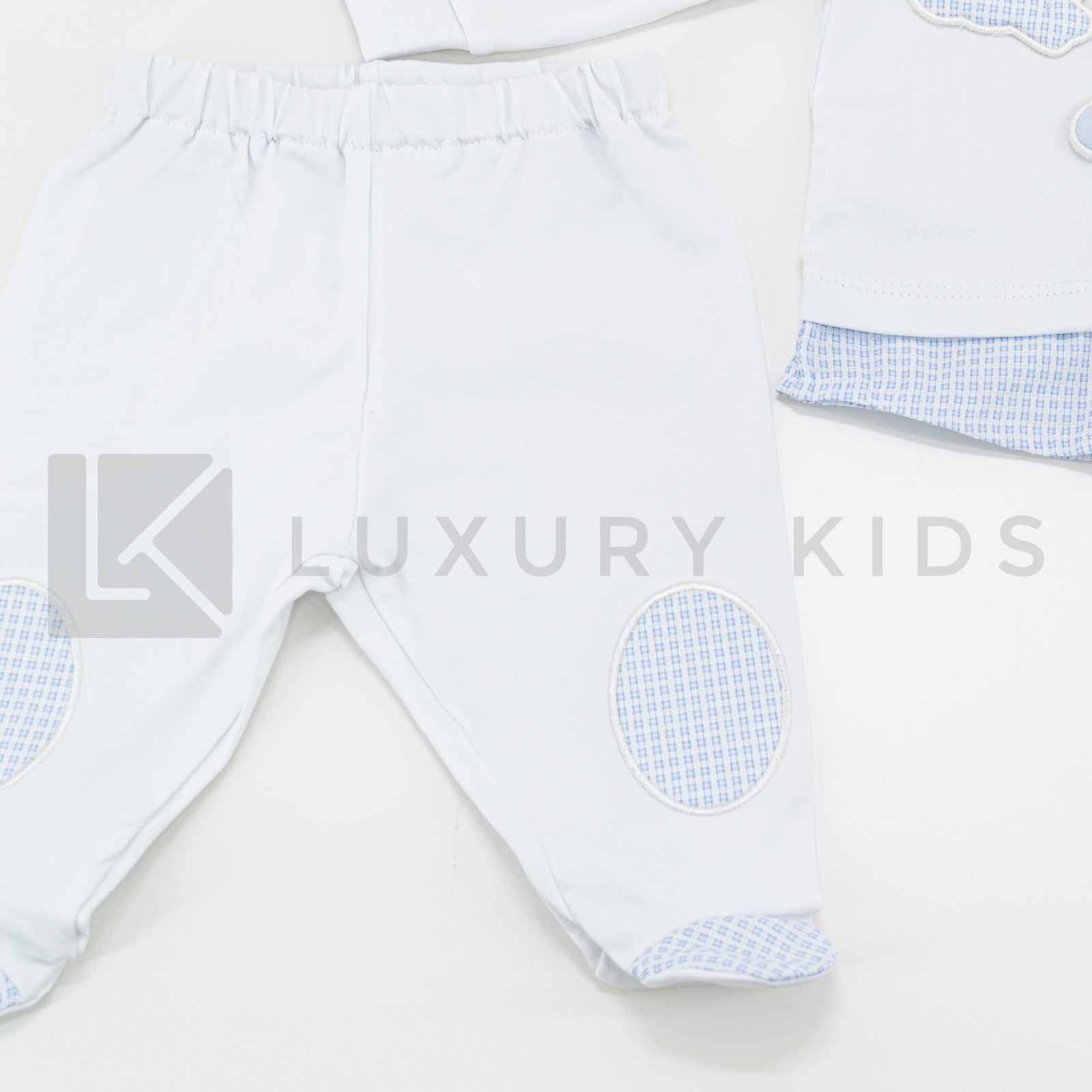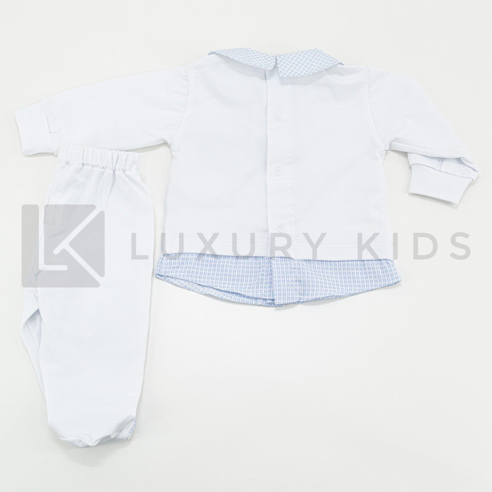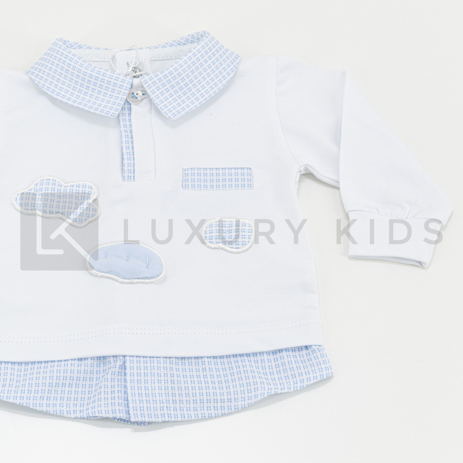 Tutina Spezzata In Cotone Bianca E Azzurra Con Aereoplanini Neonato LA SARTORIA DEI PICCOLI LS751 - LA SARTORIA DEI PICCOLI - LuxuryKids