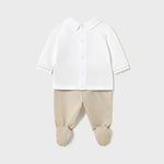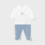 Questo completo per neonato è costituito da maglietta manica lunga con ghettina abbinata.