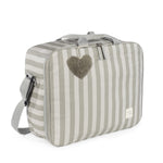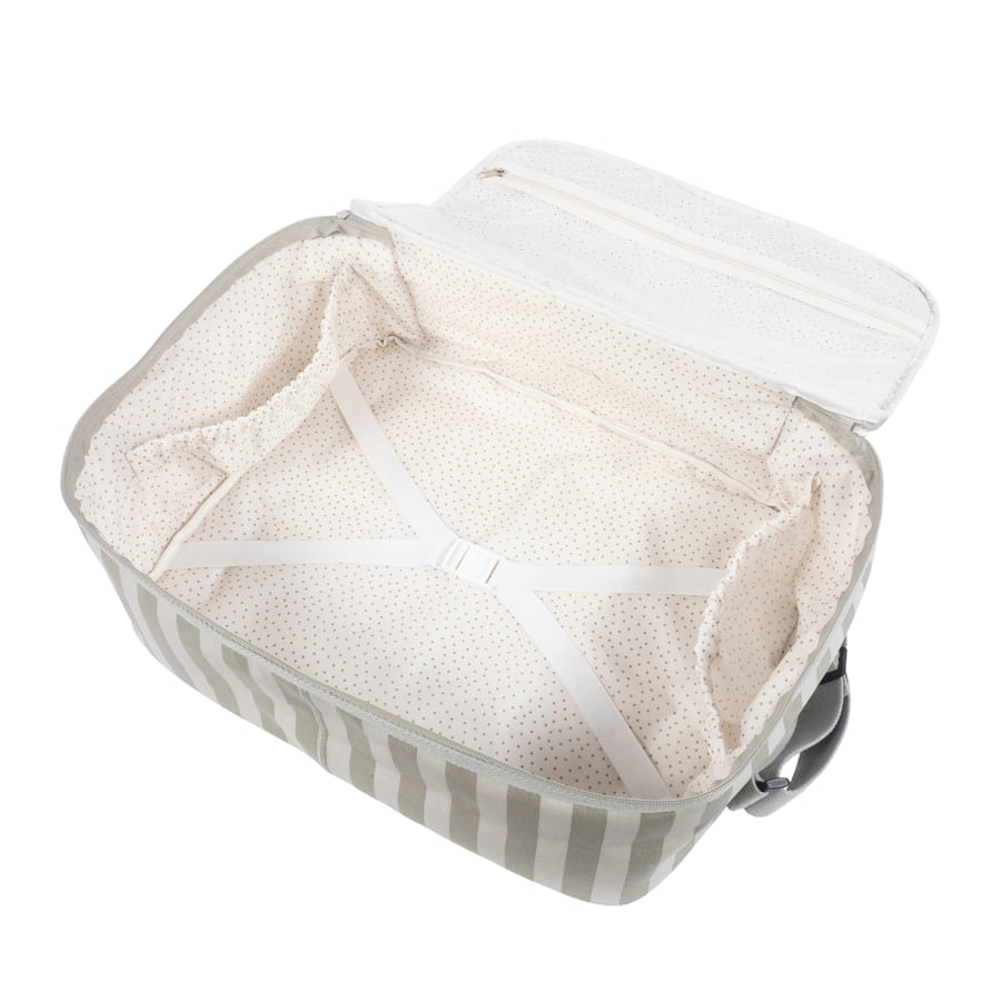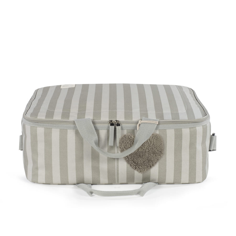 La valigia per neonati Sintra a righe è una borsa pensata appositamente per il momento più importante della gravidanza, ovvero l’arrivo del bambino. Valigia pensata per trasportare tutto il necessario per voi, per il papà e per il bambino. Questa valigia per neonati è il modello perfetto per contenere tutto ciò che non può mancare in questo giorno speciale. È comoda, leggera e maneggevole, con dimensioni rettangolari e una pratica apertura per coprire tutte le esigenze. Ha una sicura chiusura a zip a due vie per una facile apertura, una lunga tracolla e manici corti per il trasporto. Lo scomparto interno è foderato in tinta con gli elastici per contenere i vestiti e tenere tutto a posto. Include un ciondolo a forma di stella su cui è possibile ricamare il nome del bambino per personalizzare la borsa. Alta qualità e stile. Realizzata in materiale resistente e facile da pulire a mano o in lavatrice a 30°C. Walking Mum protegge il vostro bambino utilizzando i migliori tessuti, privi di coloranti azoici e di sostanze nocive per la salute. La nostra collezione Walking Mum mantiene tutta la qualità del marchio Pasito a Pasito ma con una particolare impronta di stile urbano e moderno che non passa inosservato, per vestire diversamente le passeggiate con il vostro bambino. Le borse premaman di questa linea sono più sportive e pratiche, pensate appositamente per le mamme e i papà moderni che apprezzano i design più attuali e di tendenza senza trascurare la qualità e la funzionalità degli accessori che completano e rendono più confortevoli le passeggiate con i loro bambini. Specifiche: Materiali: 65% cotone /35% poliestere plastificato. Misure: 49X37X17 cm.