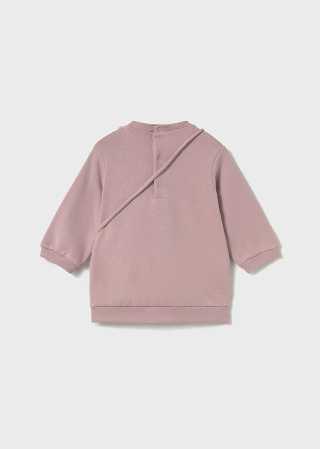 Vestito manica lunga per neonata. Girocollo. Chiusura con bottoni a pressione nella parte posteriore. Modello con fodera interna.