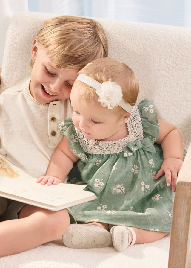 Abito Con Culotte Smanicato Con Fiori Ricamati Neonata MAYORAL 1827
