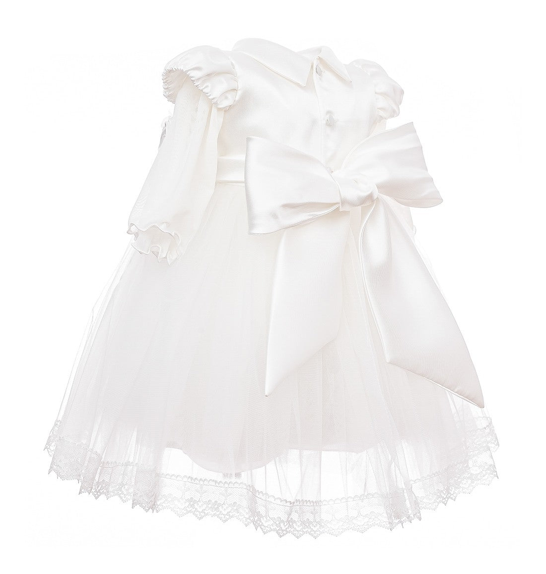Abito Elegante Cerimonia Battesimo Raso e Tulle Bianco Neonata Les Petits Enfants TIFFANY