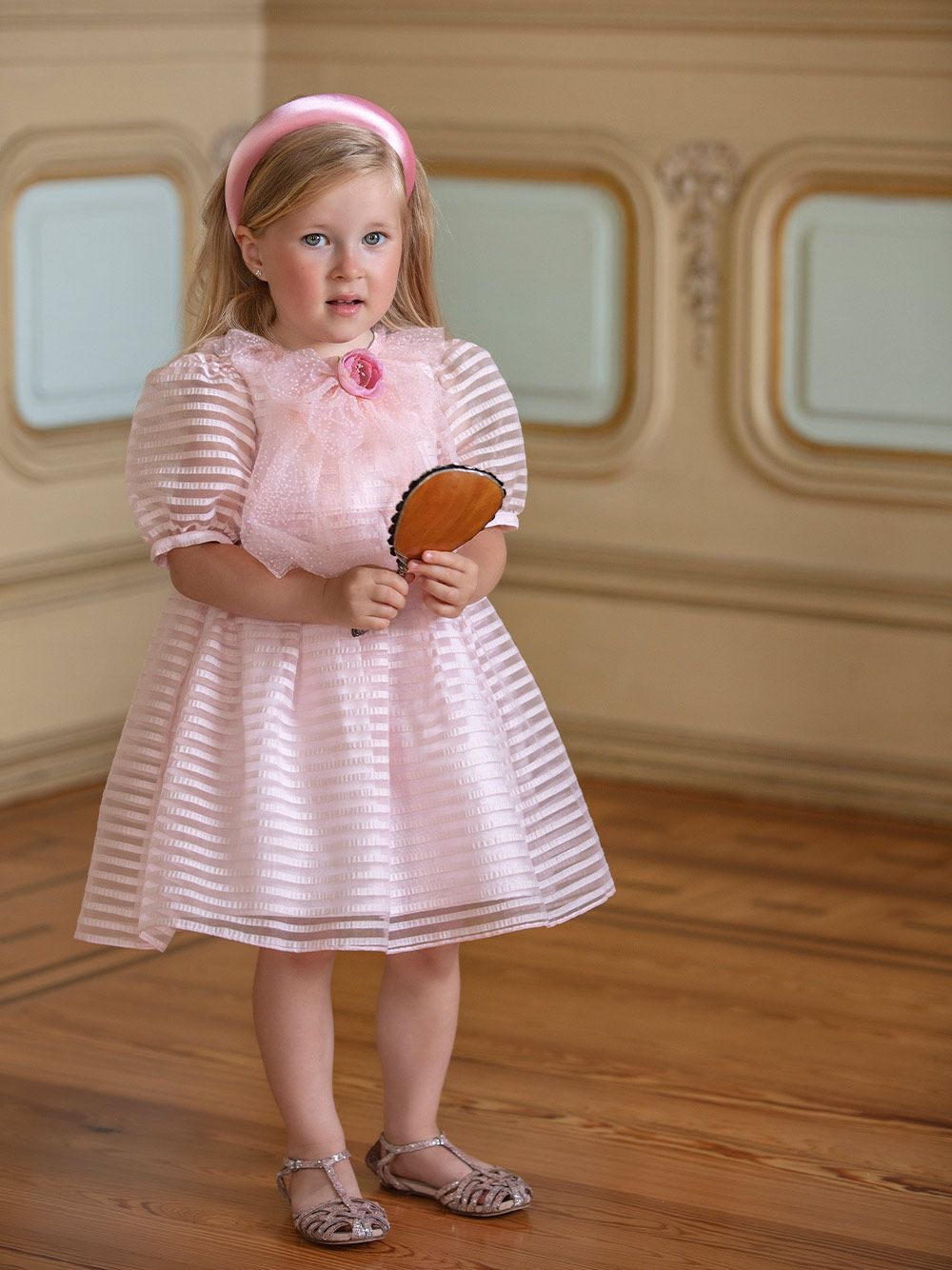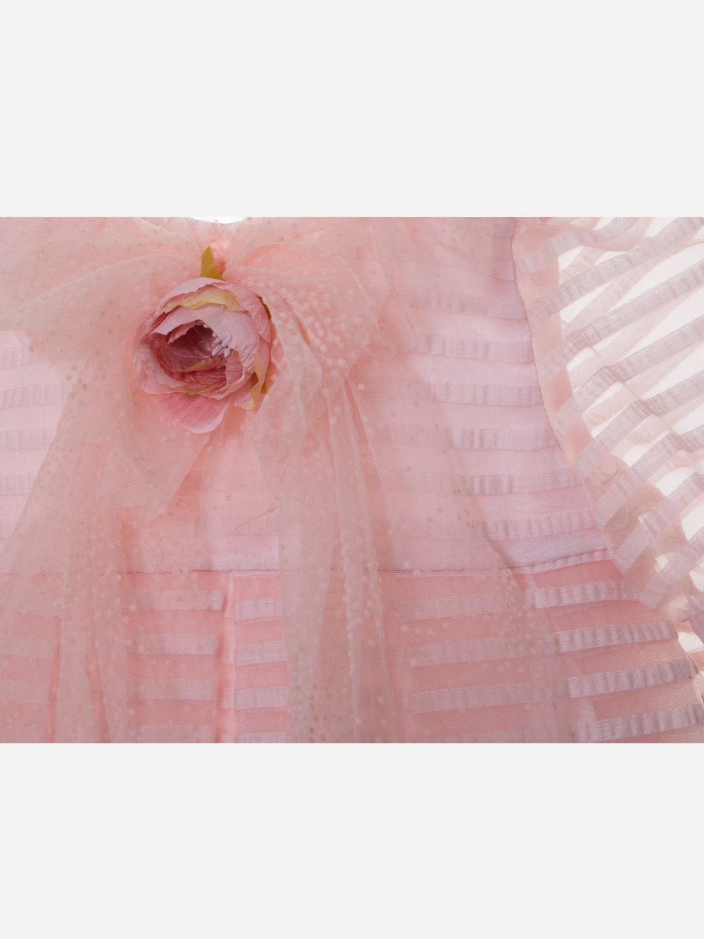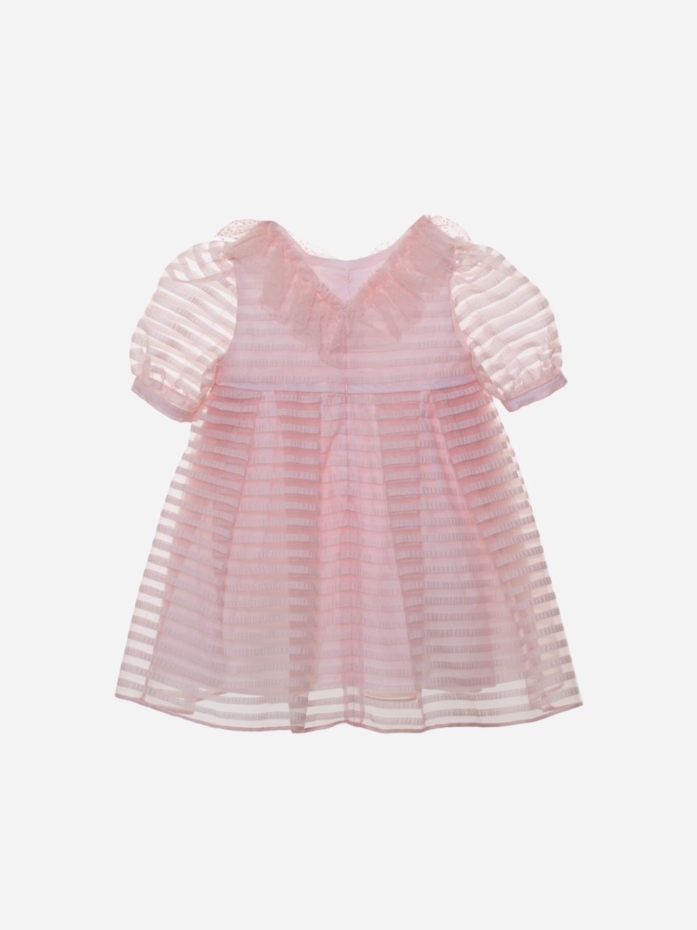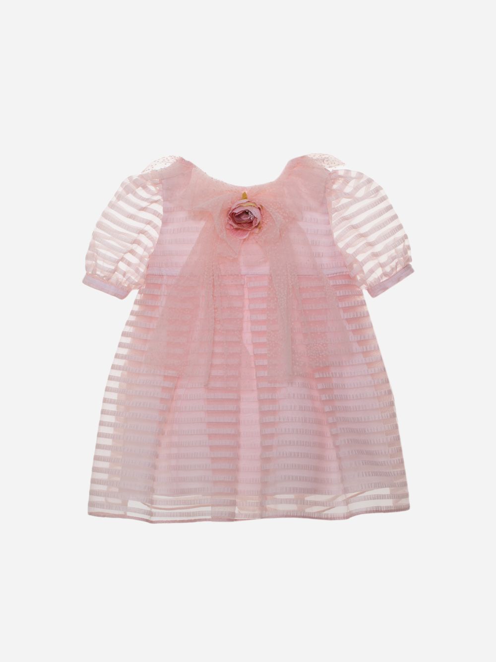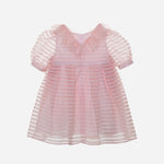 Abito rosa elegante in organza a righe con mezza manica a sbuffo