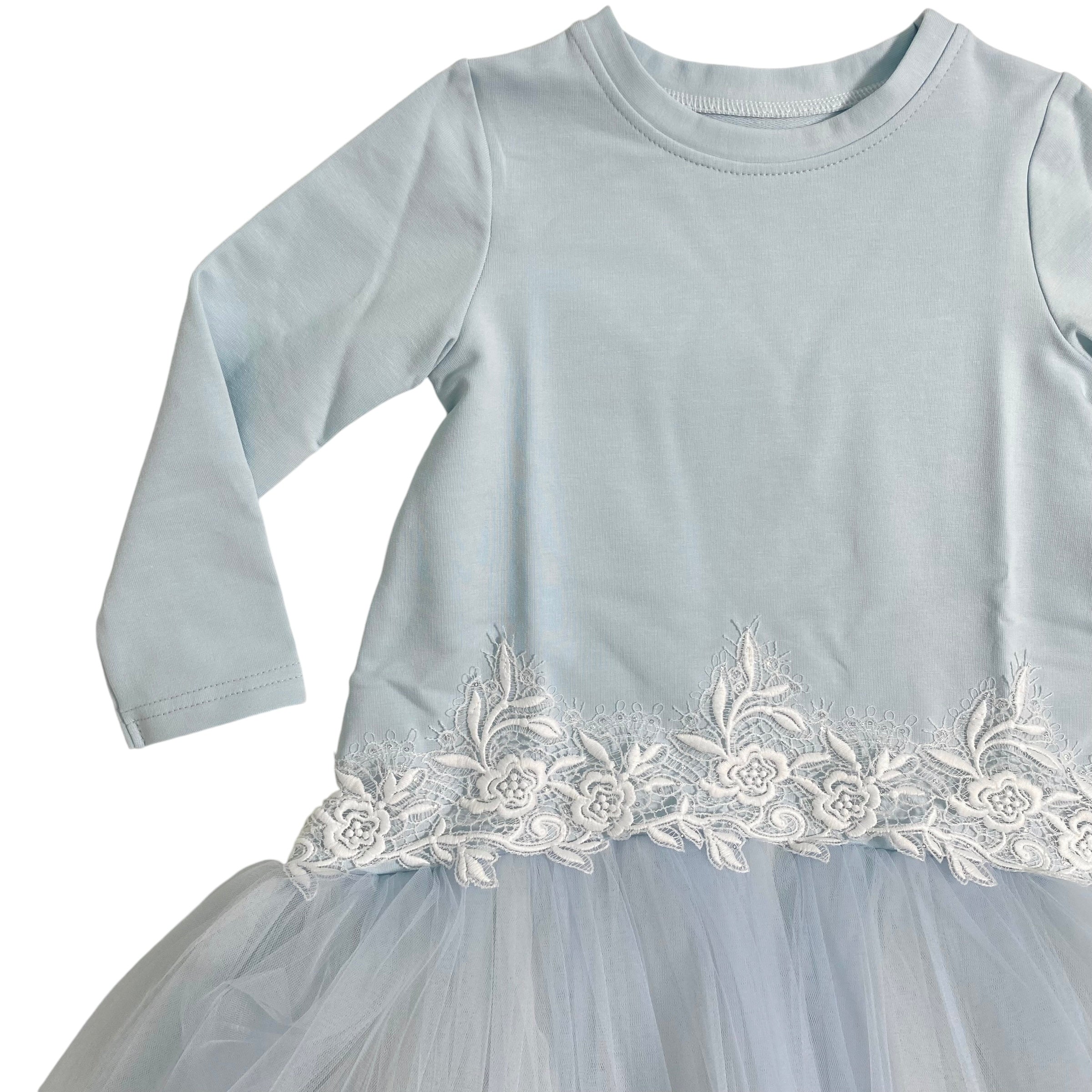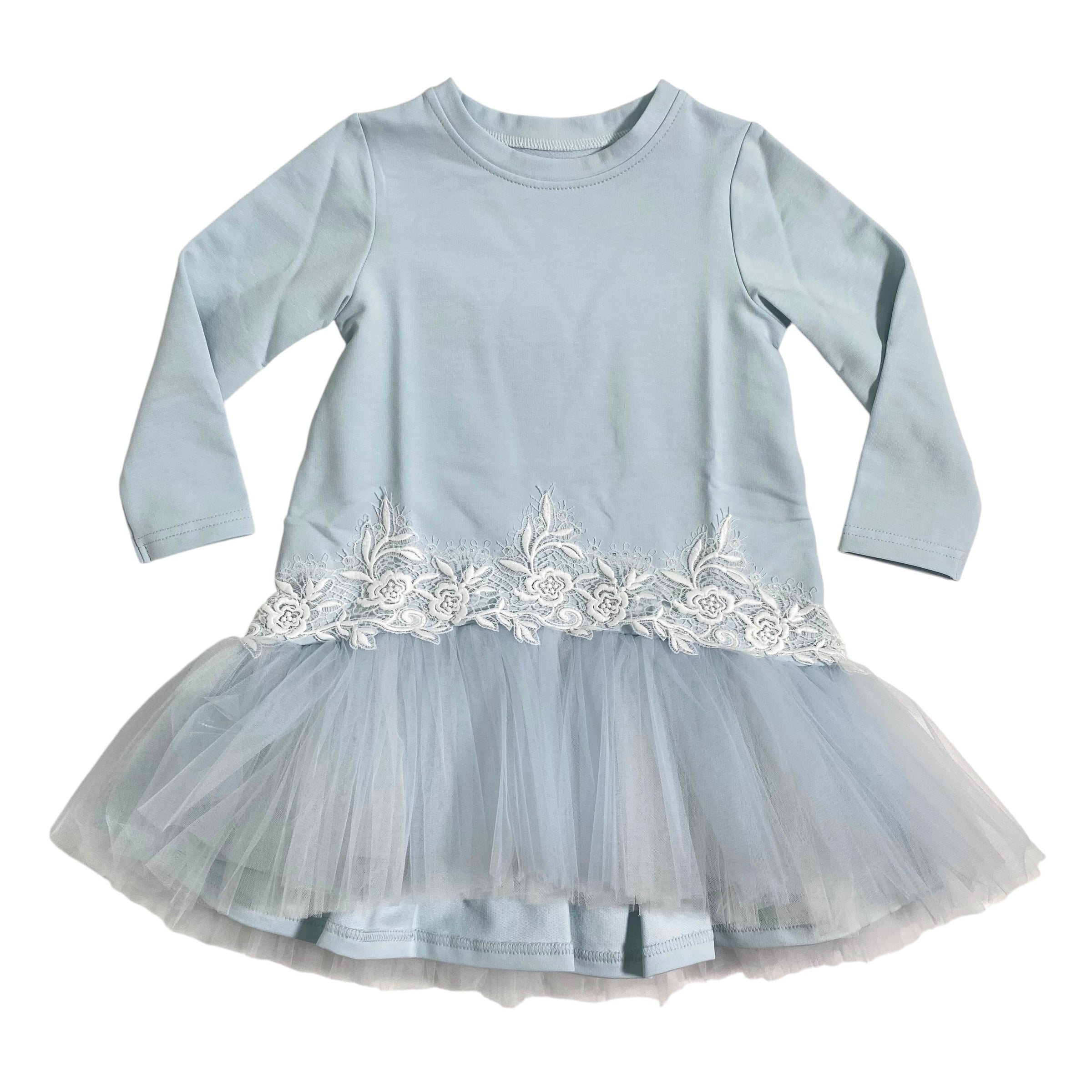 L'abito manica lunga in felpa e tulle bambina DAGA è l'ideale per un look elegante e alla moda. Realizzato con una gonna vita bassa in tulle e l'applicazione di pizzo sul davanti, è versatile e perfetto per ogni occasione. Non solo di tendenza, ma anche comodo grazie alla morbida felpa.