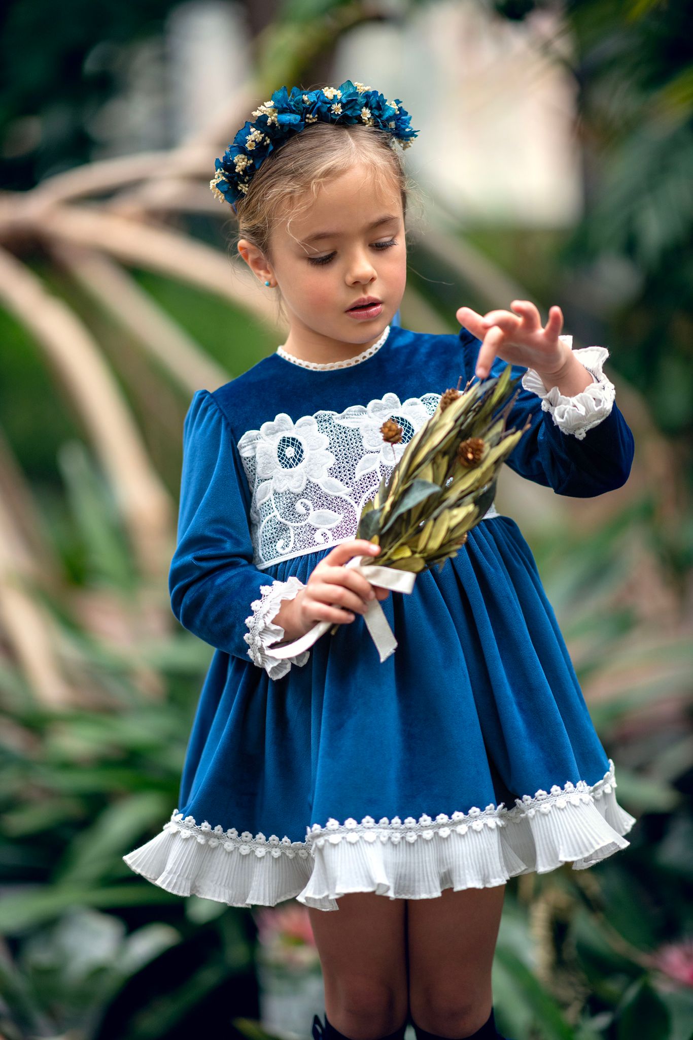 Abito Manica Lunga In Velluto Blu Bambina MIMOSA NARCISO