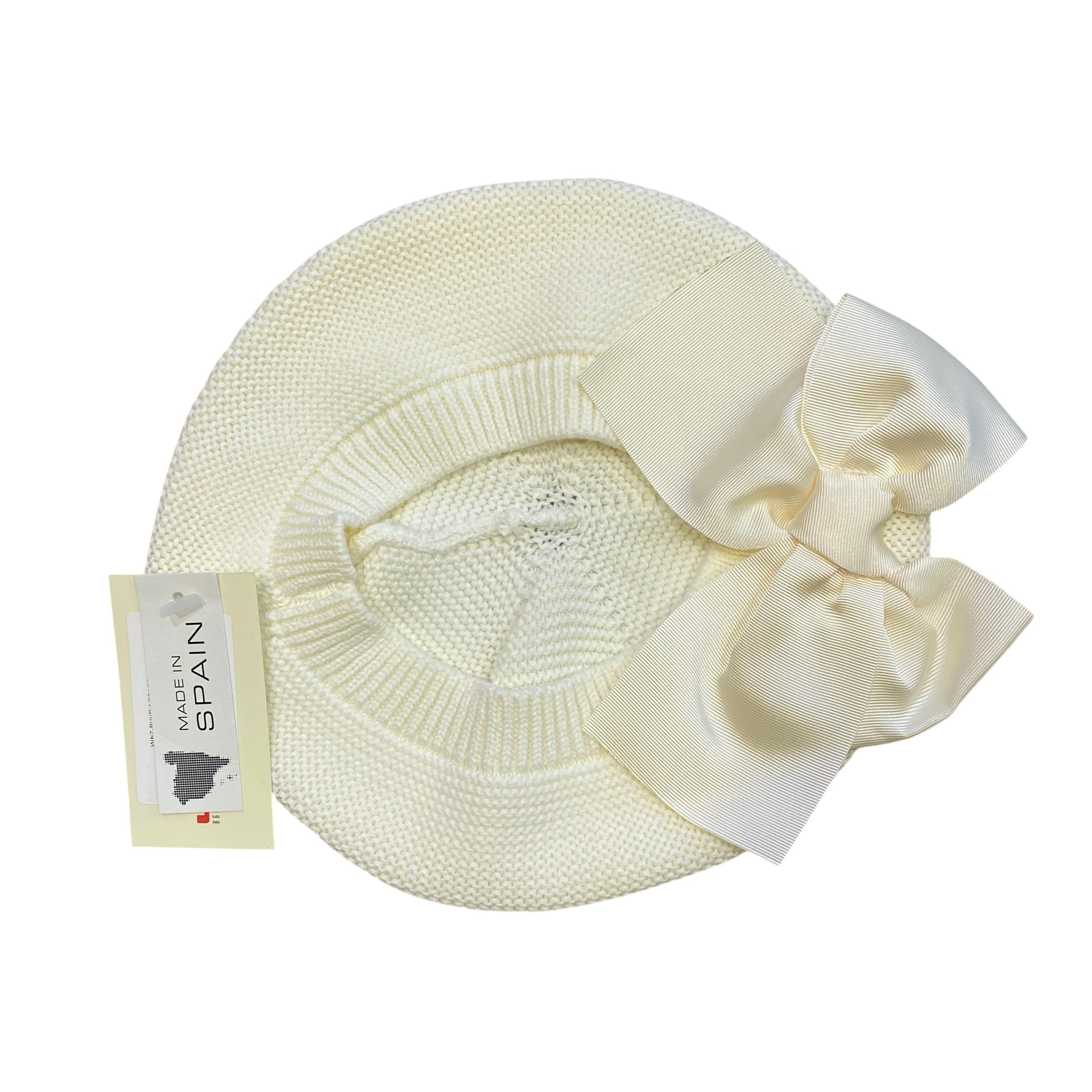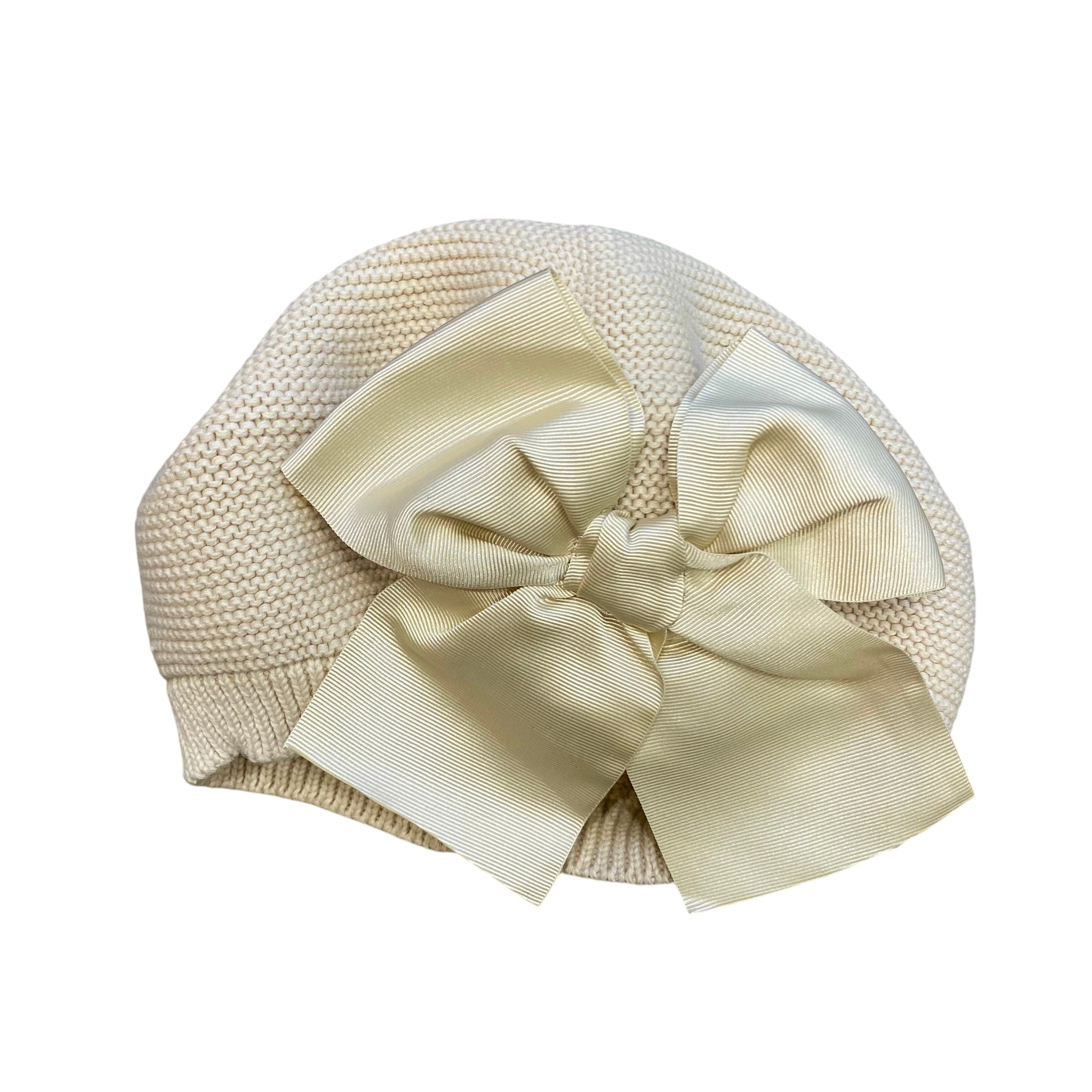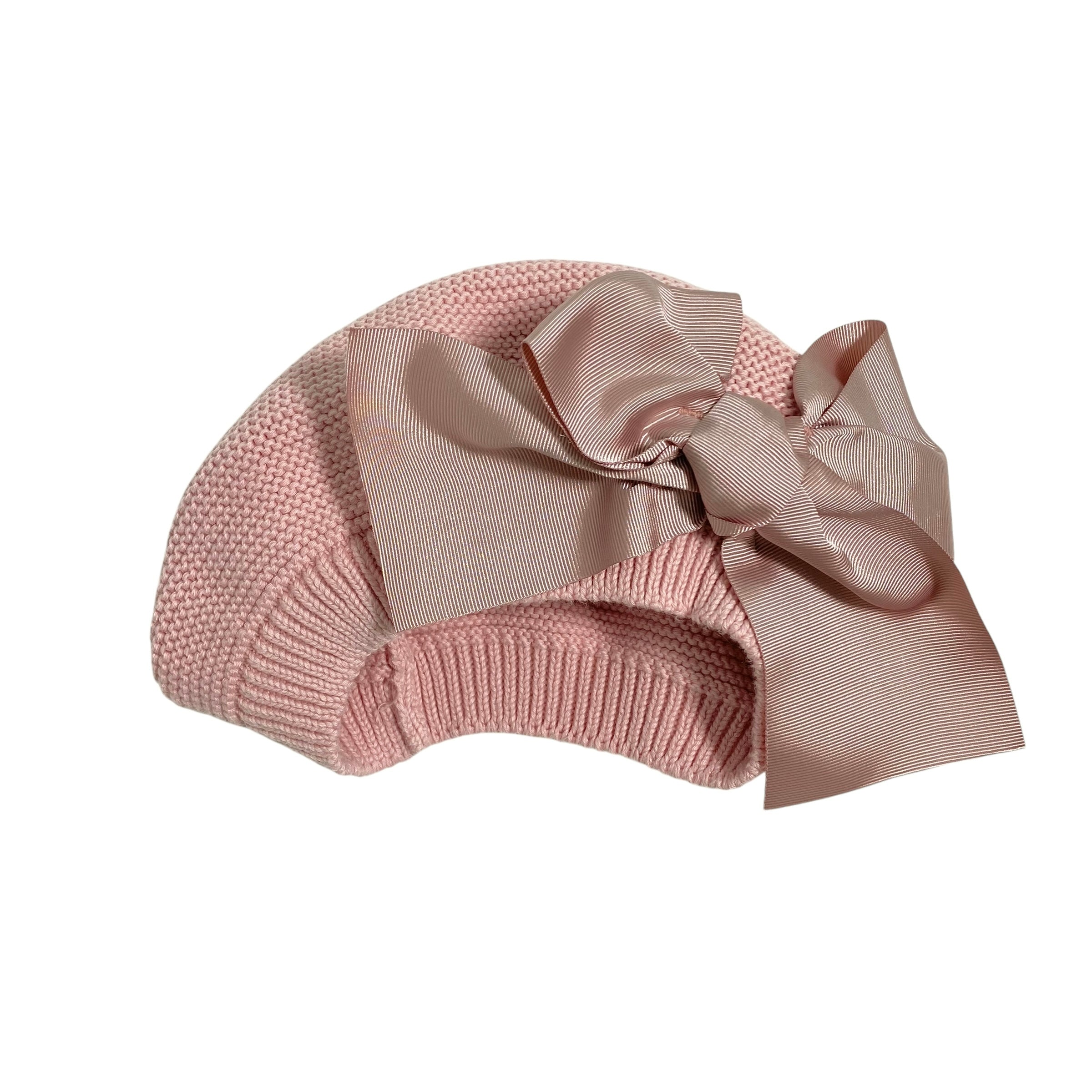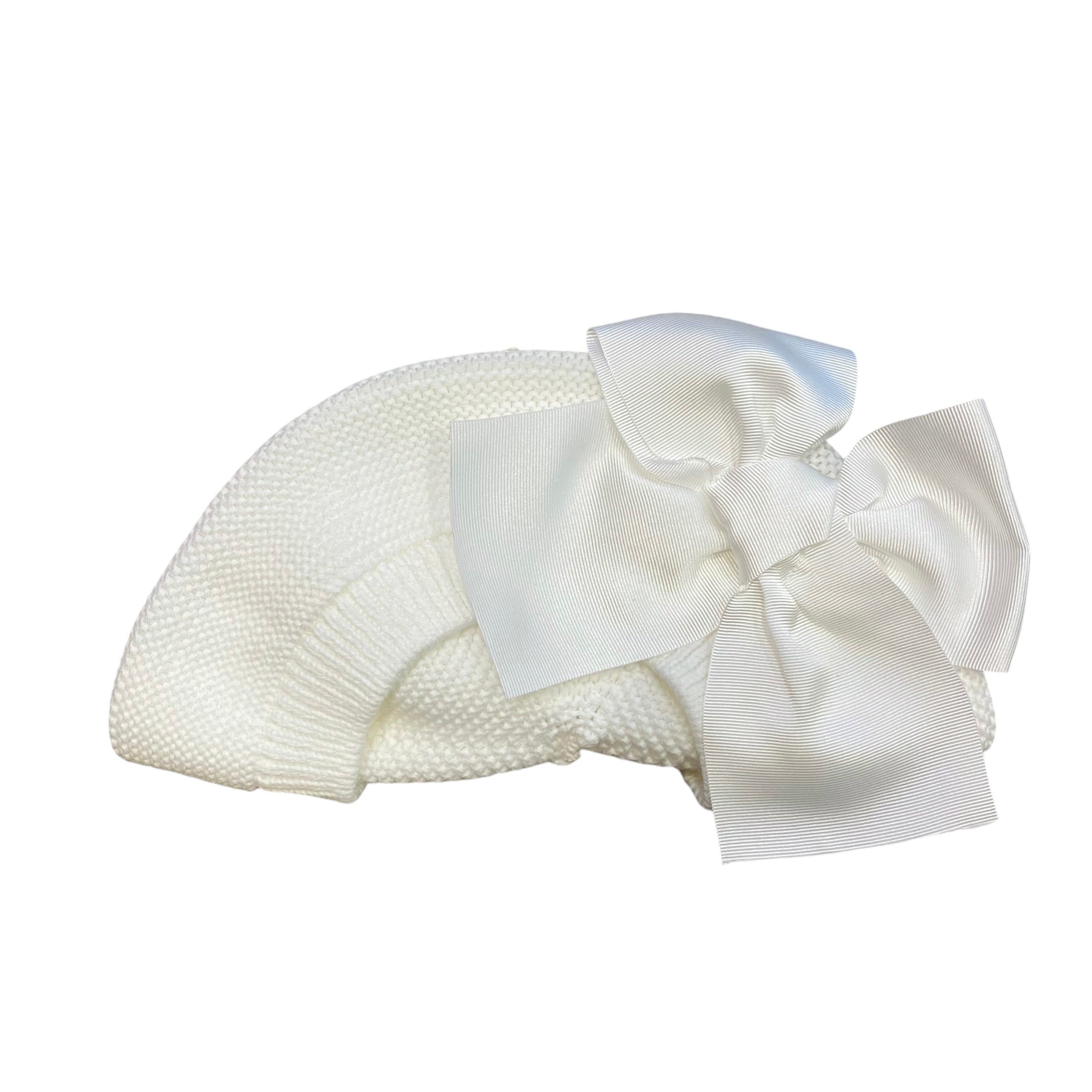 Basco in acrilico a punto legaccio con fiocco gigante in gross grain.