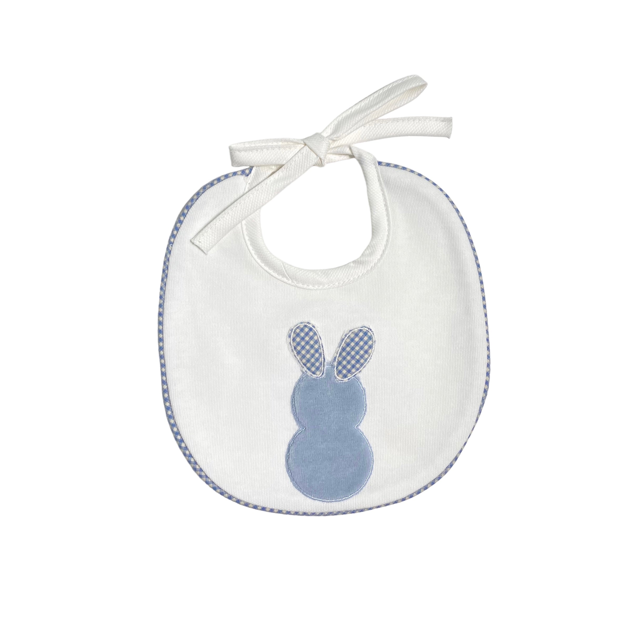 Bavetta in caldo cotone panna, con applicazione di coniglietto in ciniglia celeste polvere.