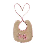 Bavetta in ciniglia beige, con fiocco sul davanti in tessuto floreale.