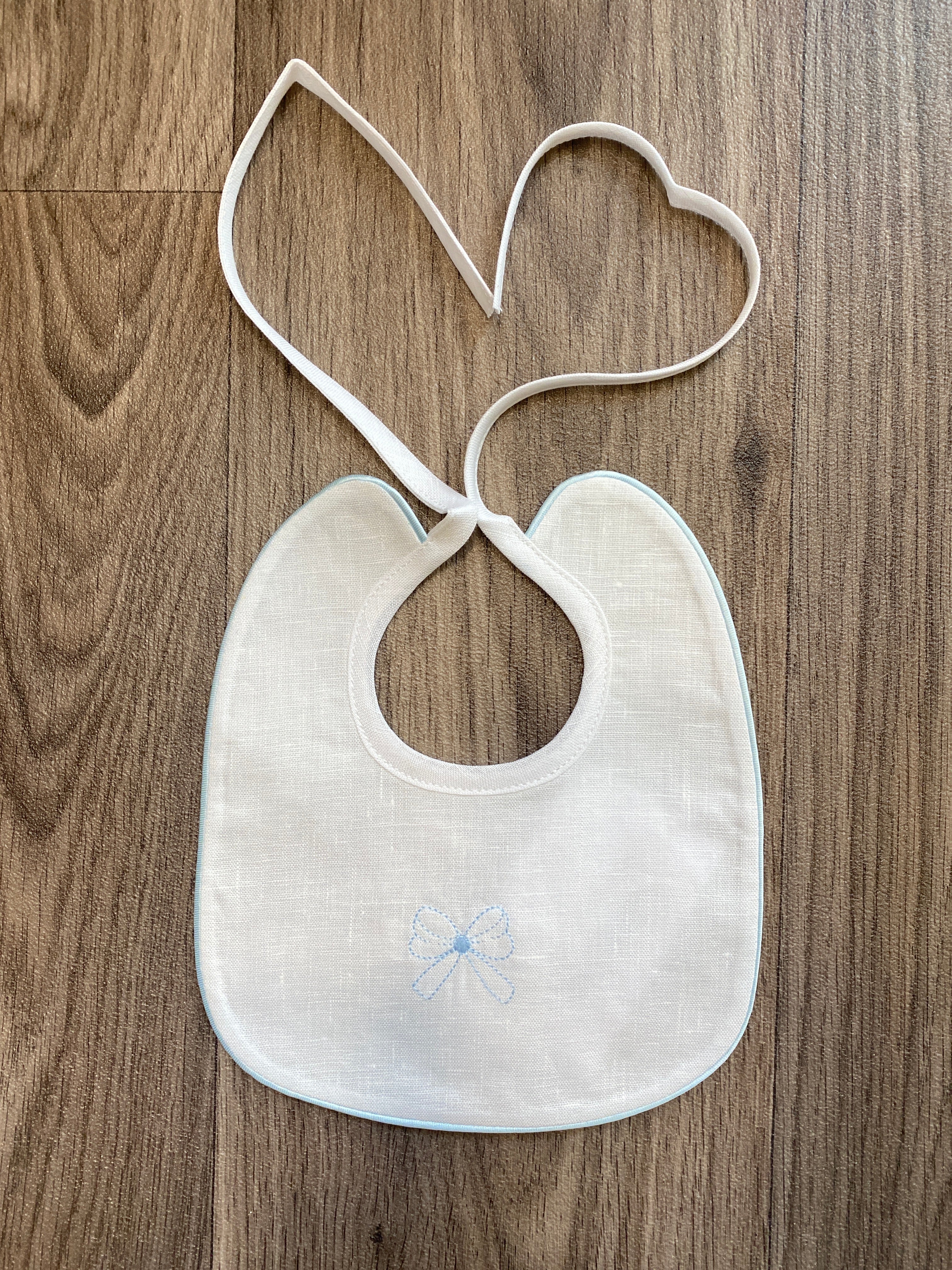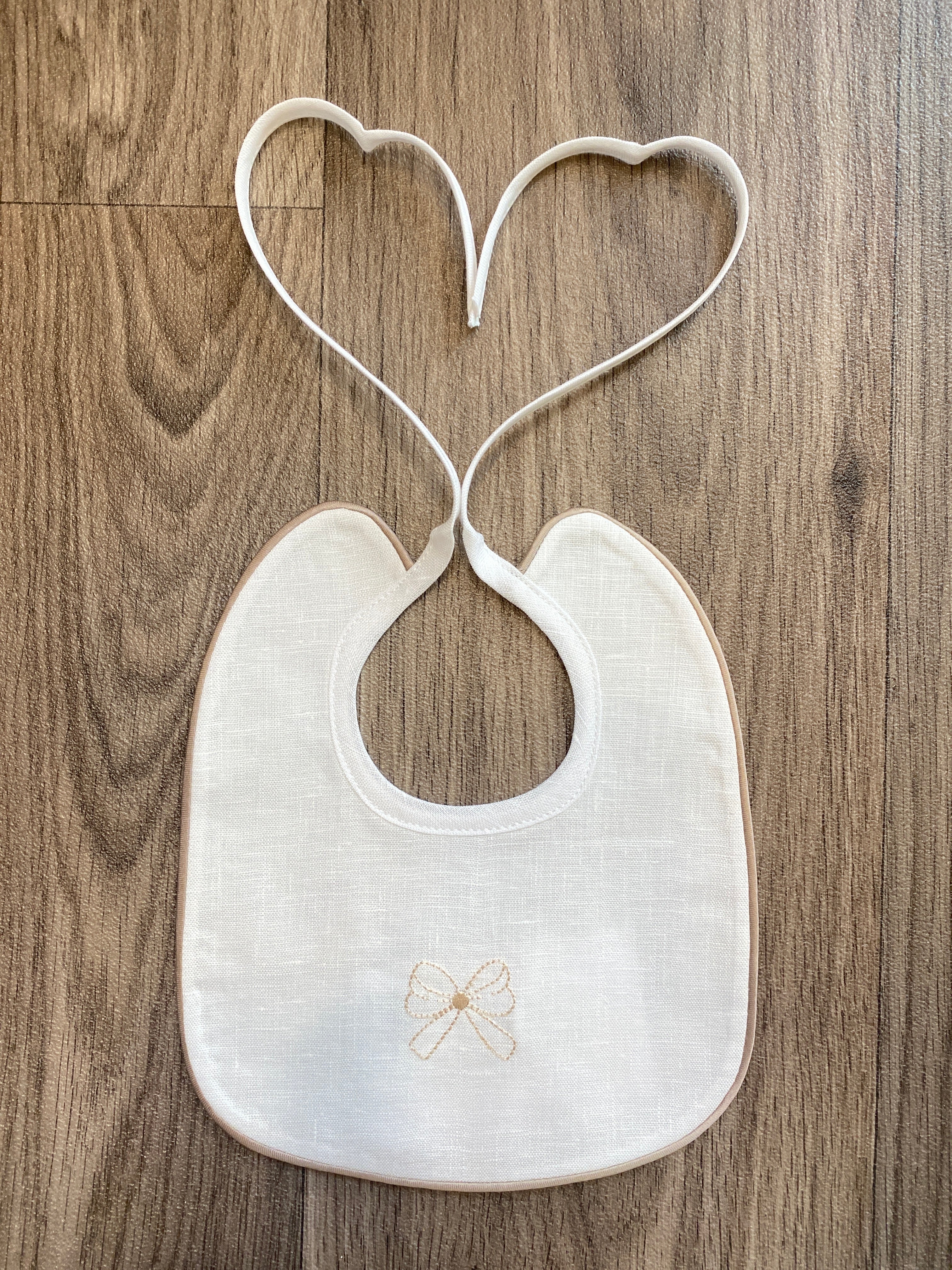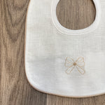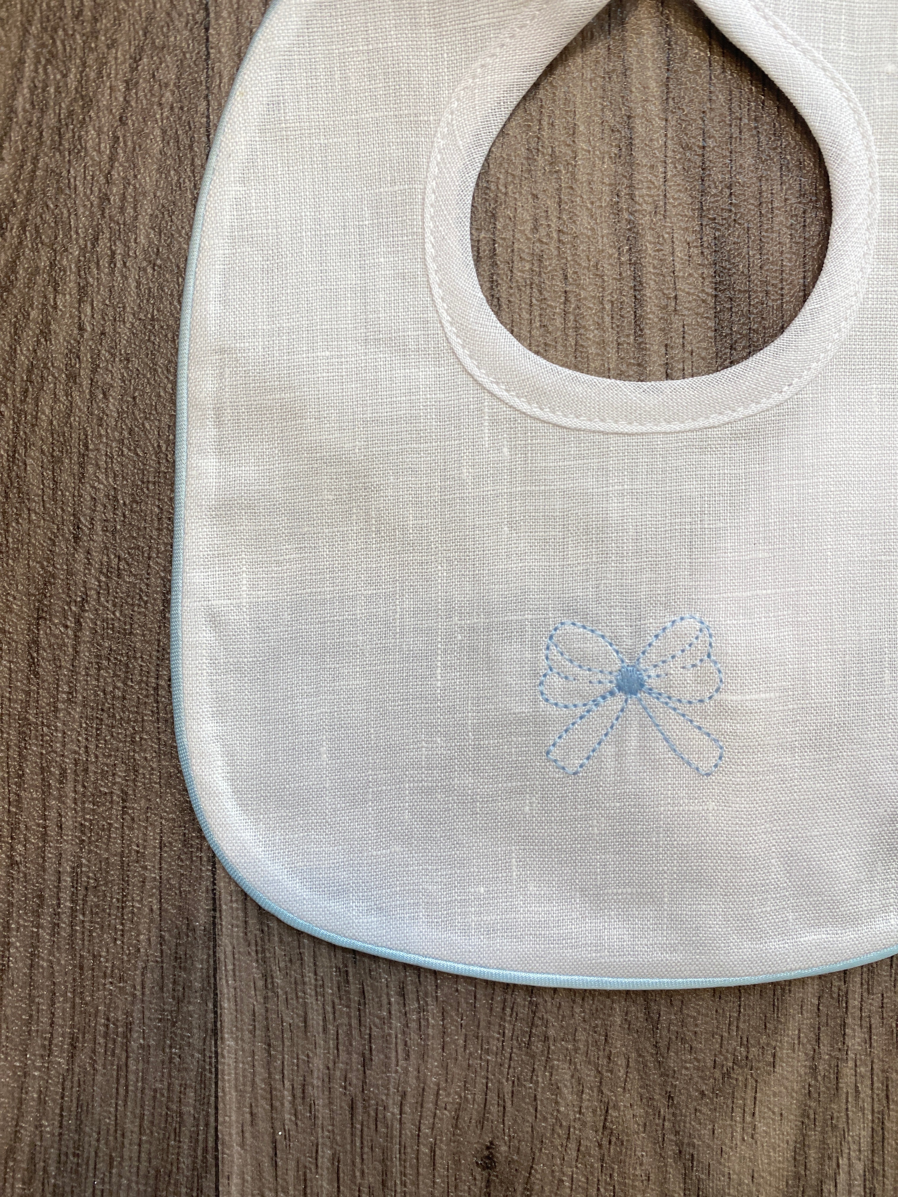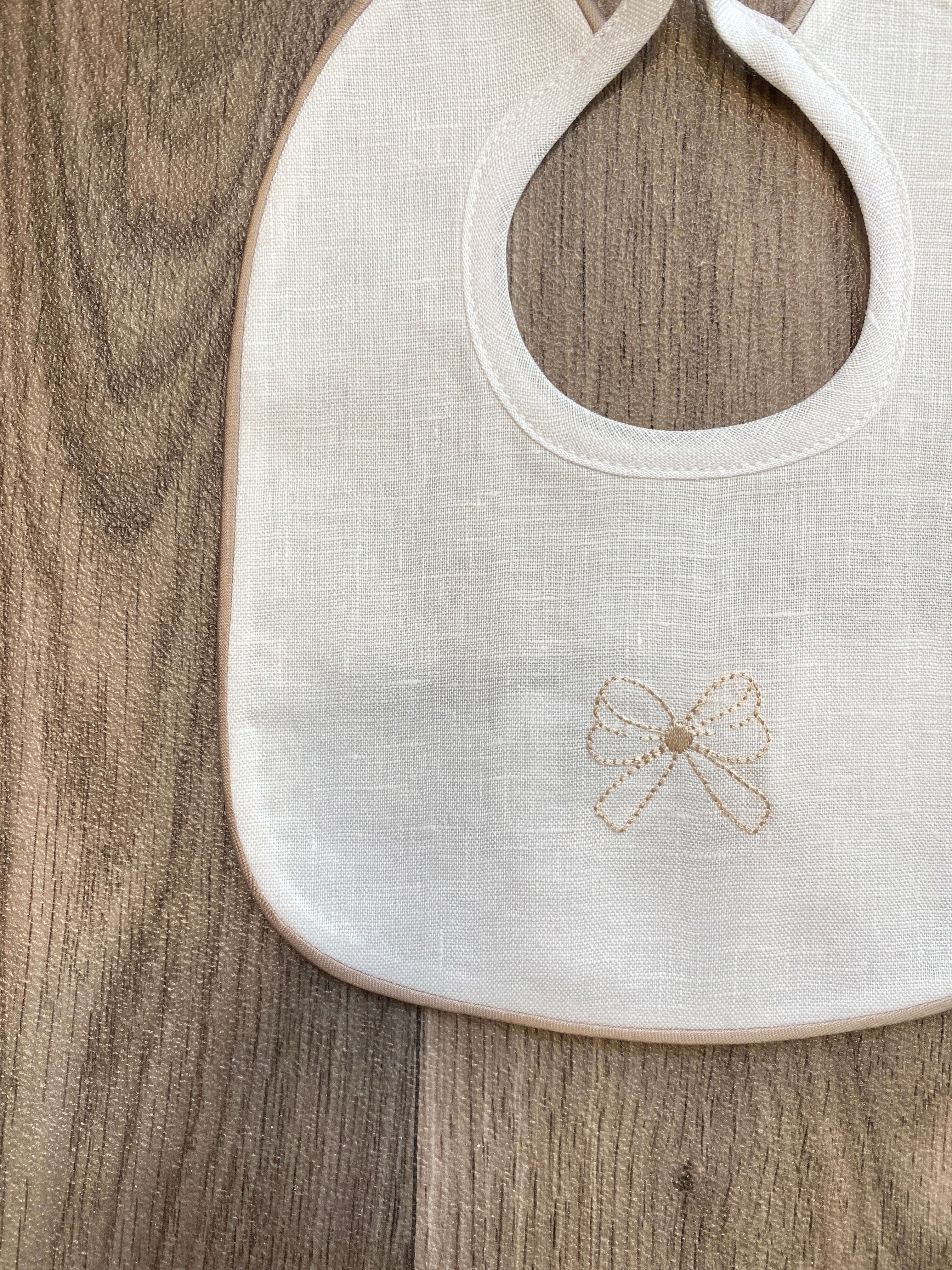 Questa bavetta in lino con ricamo a fiocco è perfetta per i neonati. Il lino è un materiale naturale e traspirante, ideale per la pelle delicata dei neonati. Il ricamo a fiocco aggiunge un tocco di eleganza e dolcezza. Disegnata e realizzata con cura dalla Sartoria dei Piccoli.