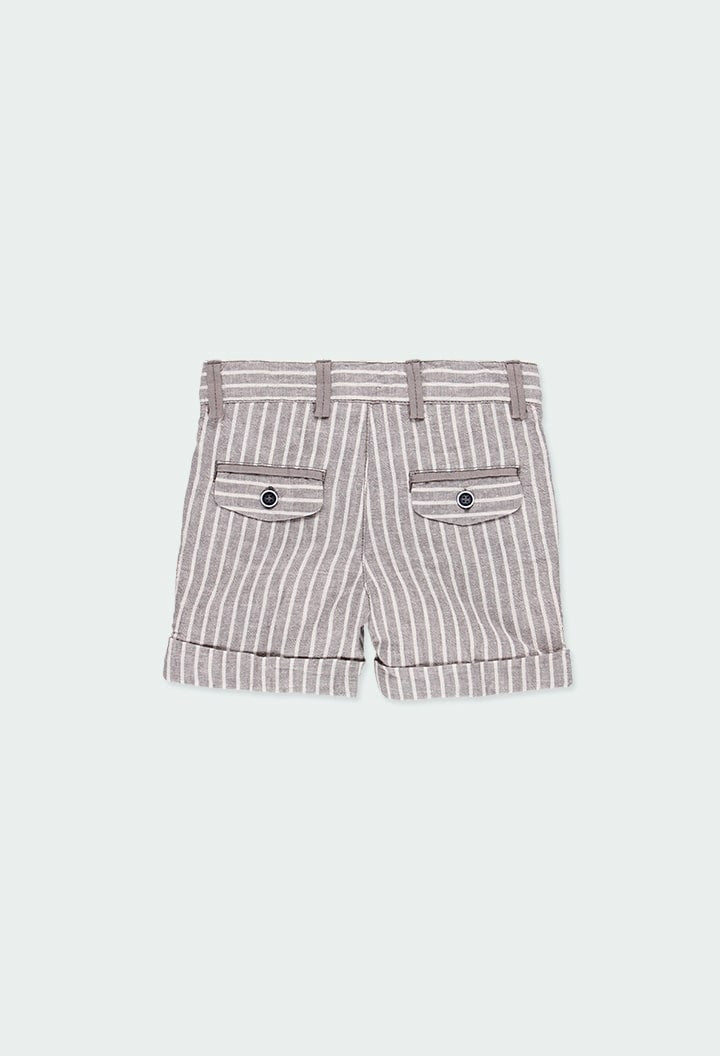 Bermuda a righe in lino per bambino color grigio e bianco.