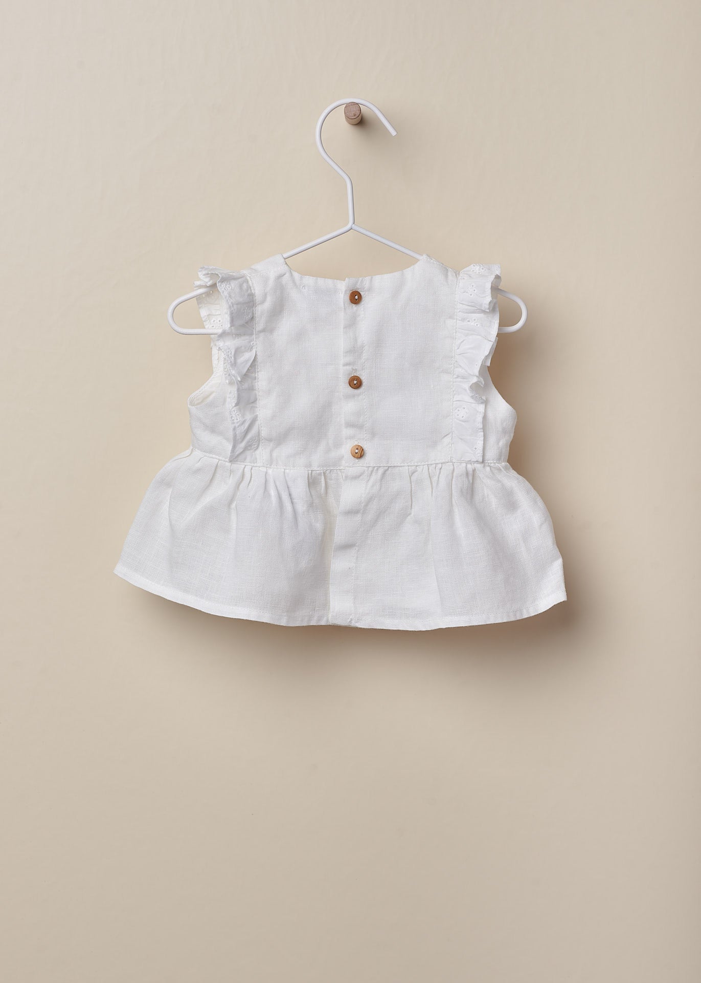 Sul giro manica presenta delle ruches in pizzo sangallo.