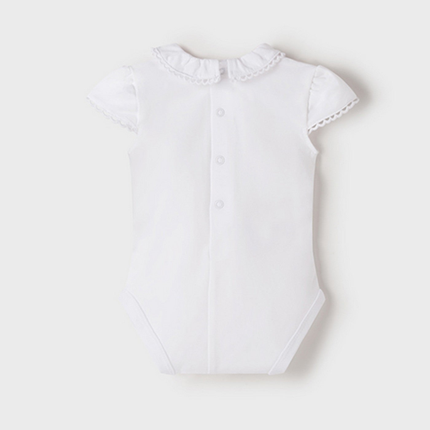 Body In cotone ecologico neonata ,rifinito sul girocollo e sulla mezza manica con rouches
