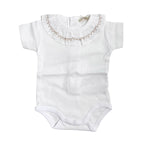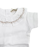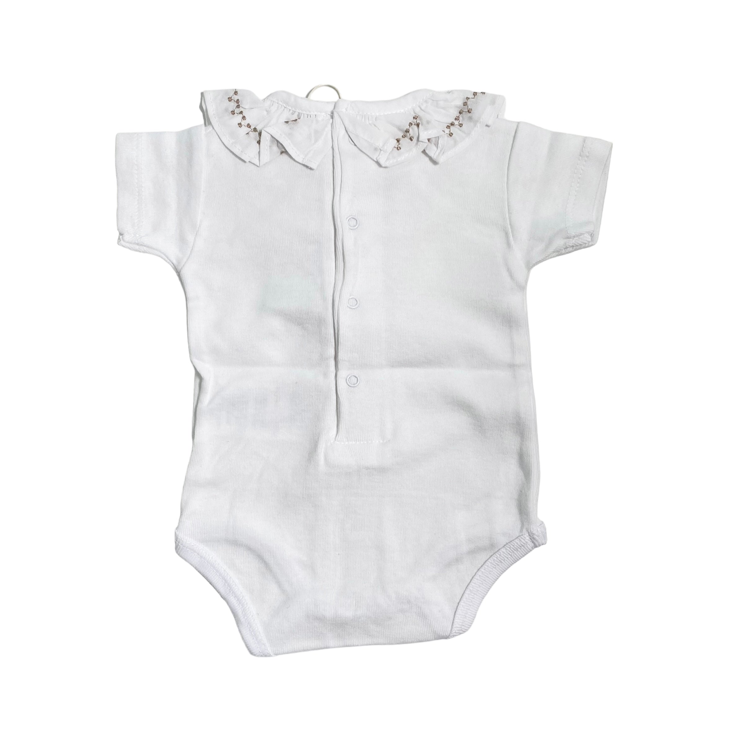Body in cotone mezza manica, in tinta unita bianco, con collo rouche ricamato.