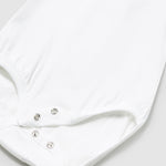 Body manica corta per neonato. Colletto modello volant. Chiusura con bottoni a pressione nella parte posteriore che facilitano la vestibilità del capo. Chiusura con bottoni a pressione nell'interno cosce per agevolare la vestibilità.