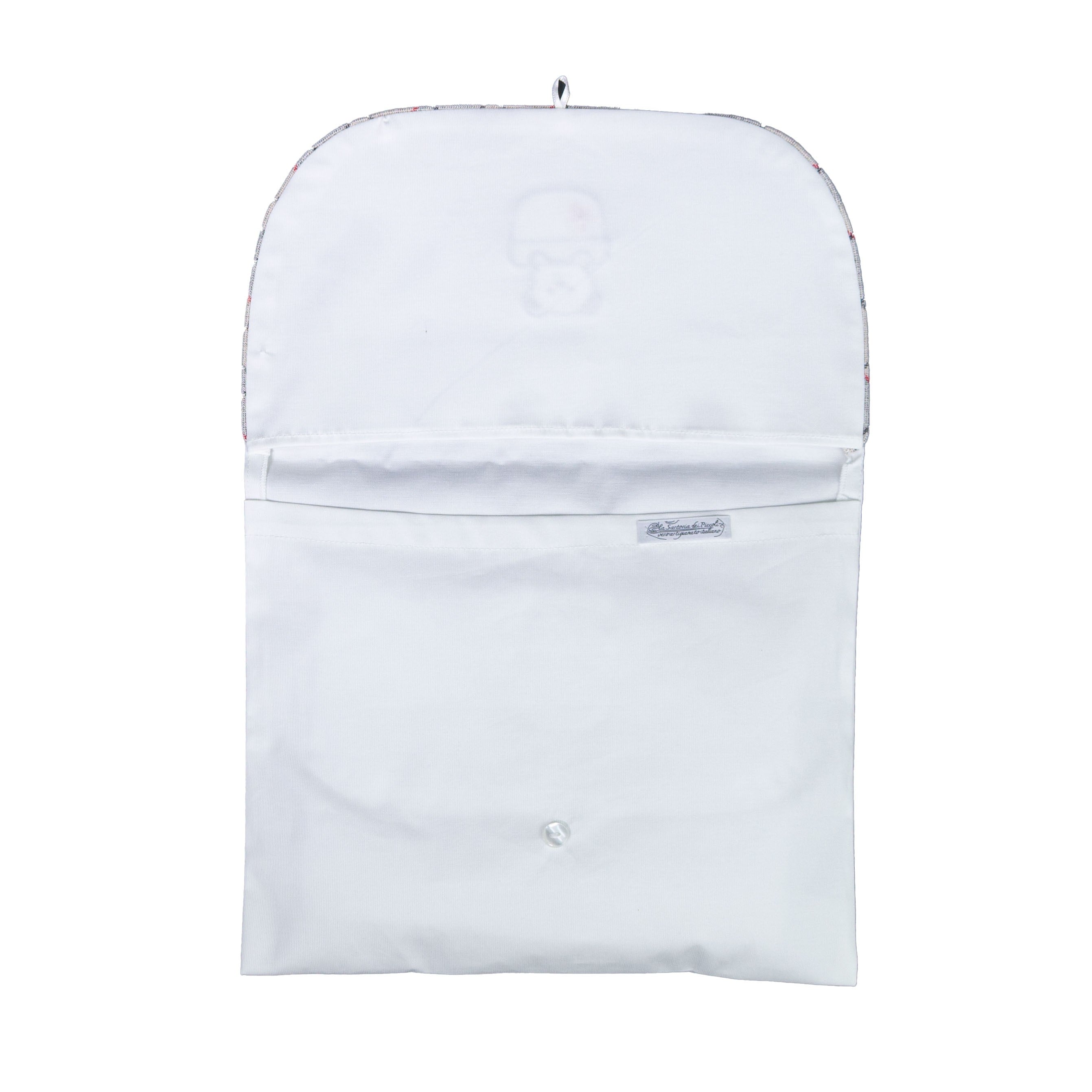 Busta Nascita in Cotone Con Orsetto Bianco e Grigio. Apertura con Bottoncino.