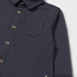 Overshirt manica lunga per bebé. Colletto modello camicia. Chiusura con bottoni nella parte anteriore. Tasca funzionale nella parte anteriore. Design liscio.