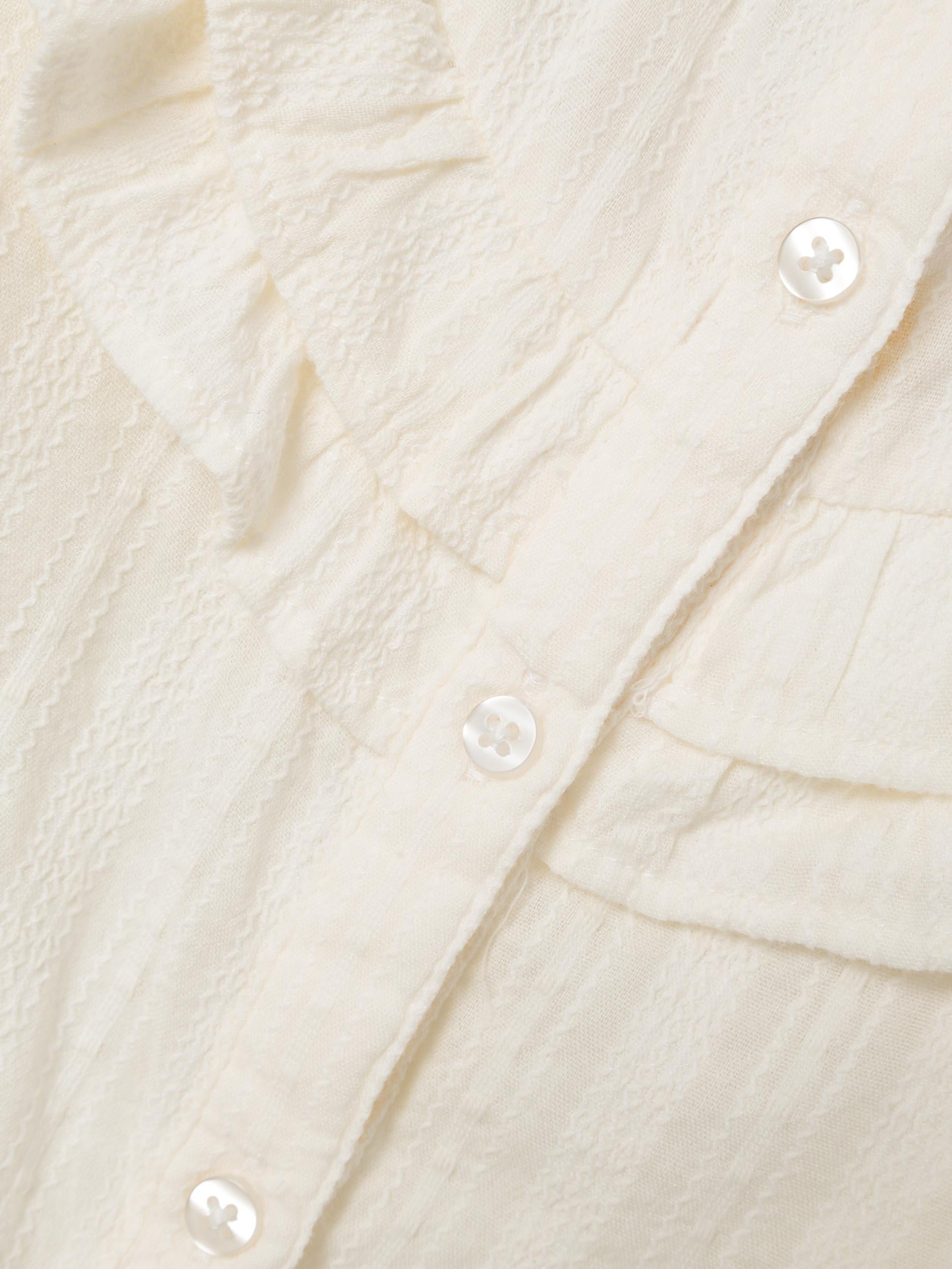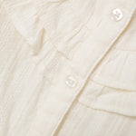 Camicia in cotone con microtrama interna, con rouches sul petto e collo a pistagna.