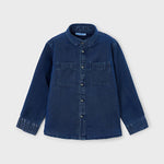 Camicia manica lunga per bambino con polsini con bottoni. Colletto modello camicia. Chiusura con bottoni nella parte anteriore. Tasche funzionali nella parte anteriore.
