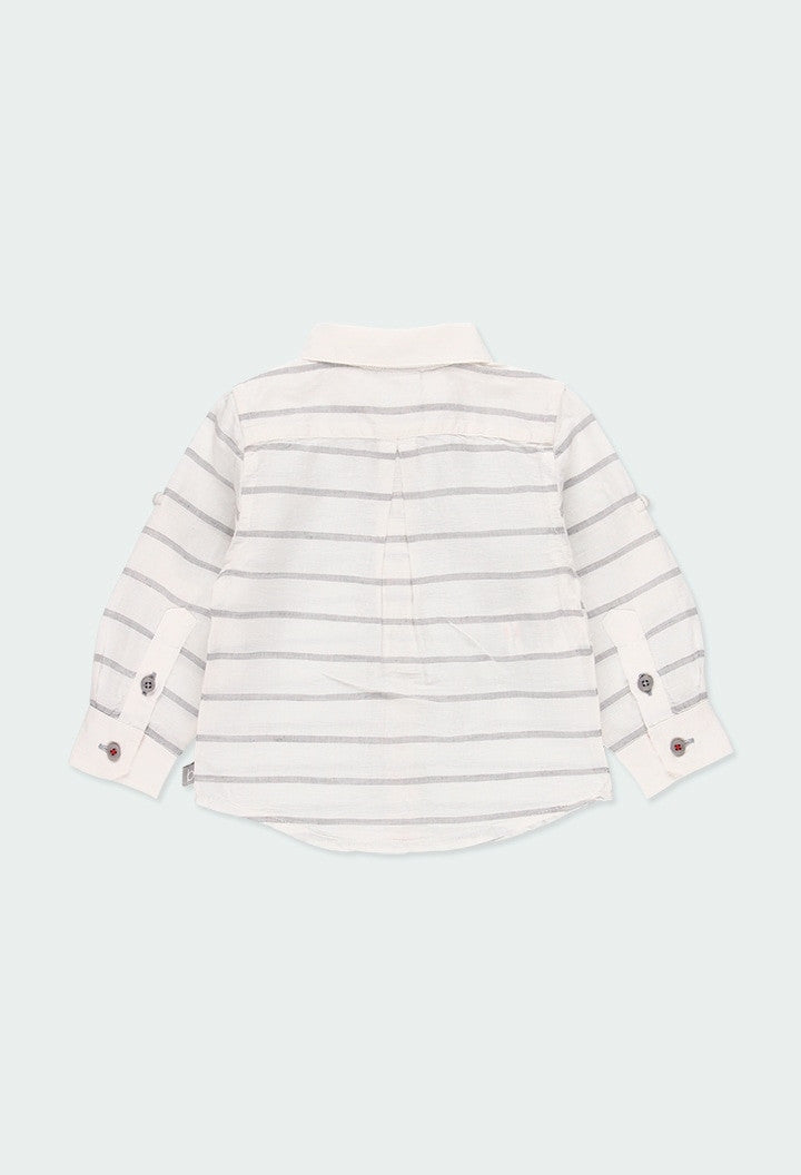 Camicia Manica Lunga Bianca Fantasia A Righe Grigio In Lino Bambino BOBOLI 71459 - BOBOLI - LuxuryKids