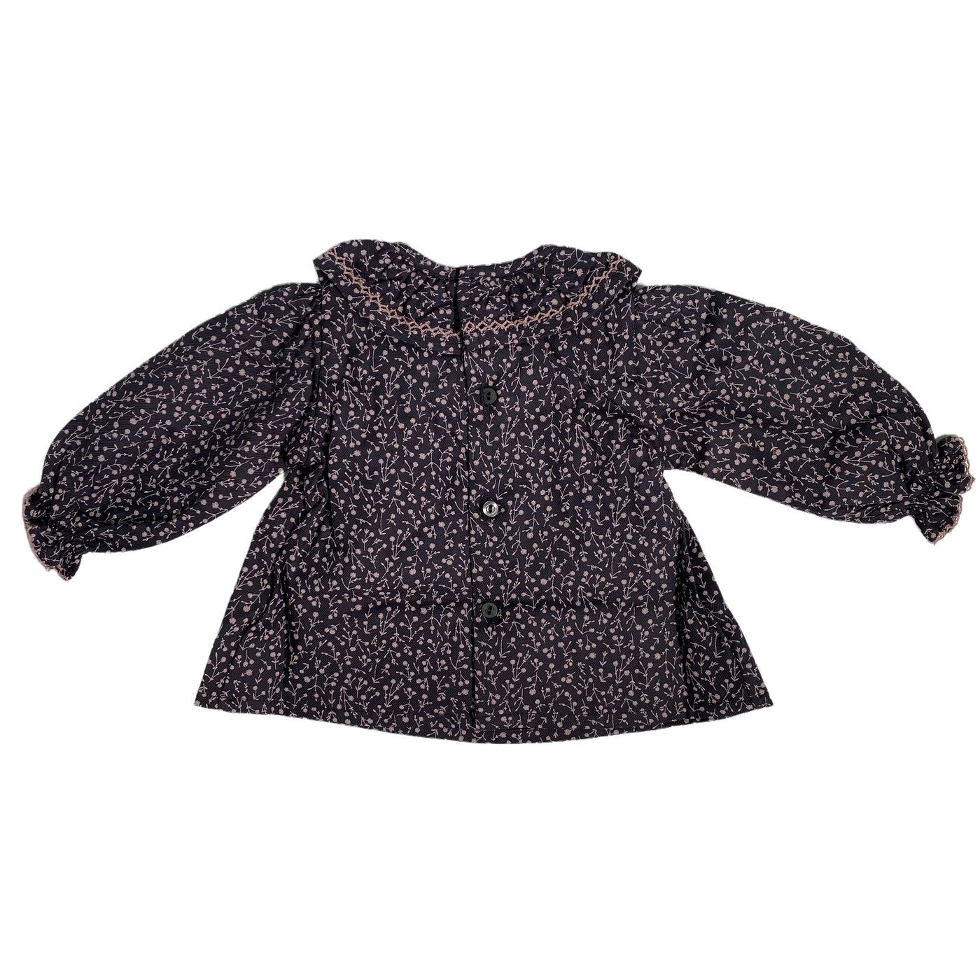 Camicia in caldo cotone, fantasia floreale, con collo rouche.