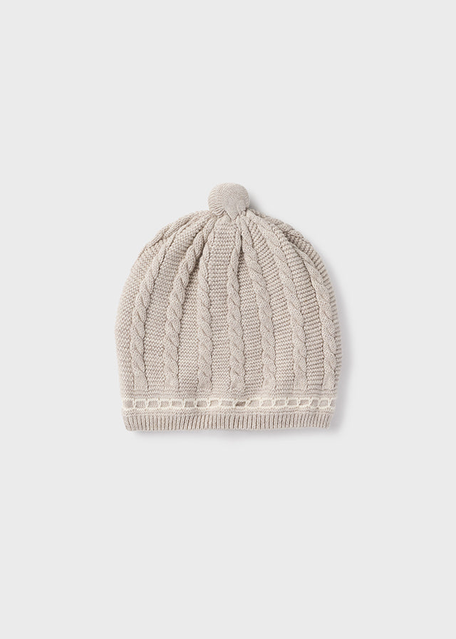 Questo cappello elegante in morbido cotone è perfetto per neonati di entrambi i sessi. La particolare lavorazione a trecce rende il cappello unico e adatto anche per gli outfit più speciali. Ideale come parte del corredino per i primi giorni di vita.