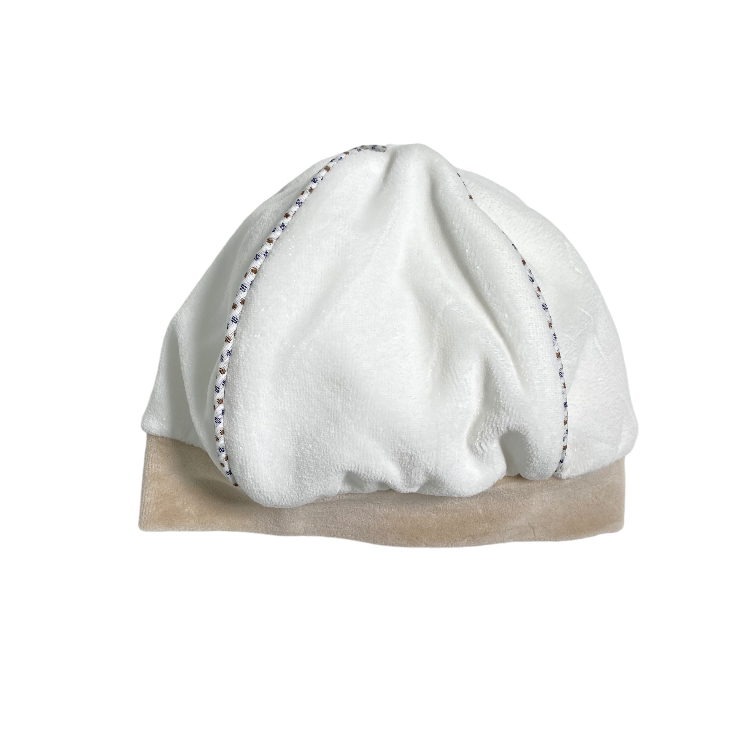 Questo cappello neonato in ciniglia con risvolto è perfetto per l'uscita clinica. Realizzato in Italia, offre morbidezza e comfort al tuo piccolo. Il design elegante e unico lo rendono un'ottima scelta per proteggere il tuo neonato durante i primi giorni di vita.