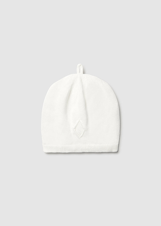 100% cotone organico. Dolce cappello per neonato. Tessuto in tricot morbido al tatto. Elementi decorativi: Nodo decorativo.. Scegliendo i nostri prodotti in cotone, supporti il nostro impegno nell'iniziativa Better Cotton.