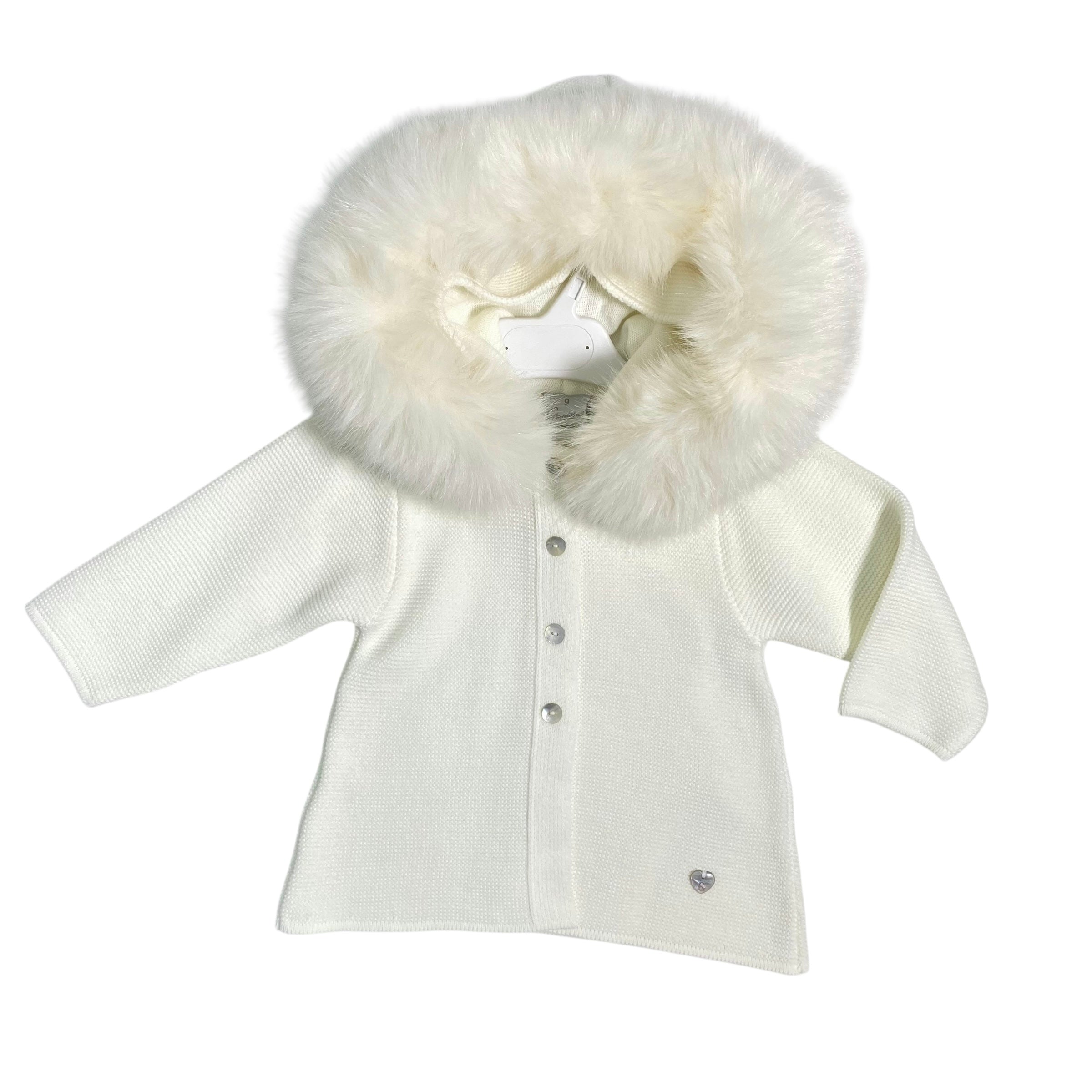 Questo cappottino con cappuccio, dotato di una pelliccia removibile, è realizzato in tessuto anallergico acrilico per assicurare comfort alla tua bambina. Completa l'outfit con eleganza e stile , mantenendo la tua piccola al caldo e al riparo dal freddo invernale. Un capo pratico e alla moda per le passeggiate all'aria aperta.