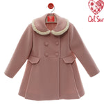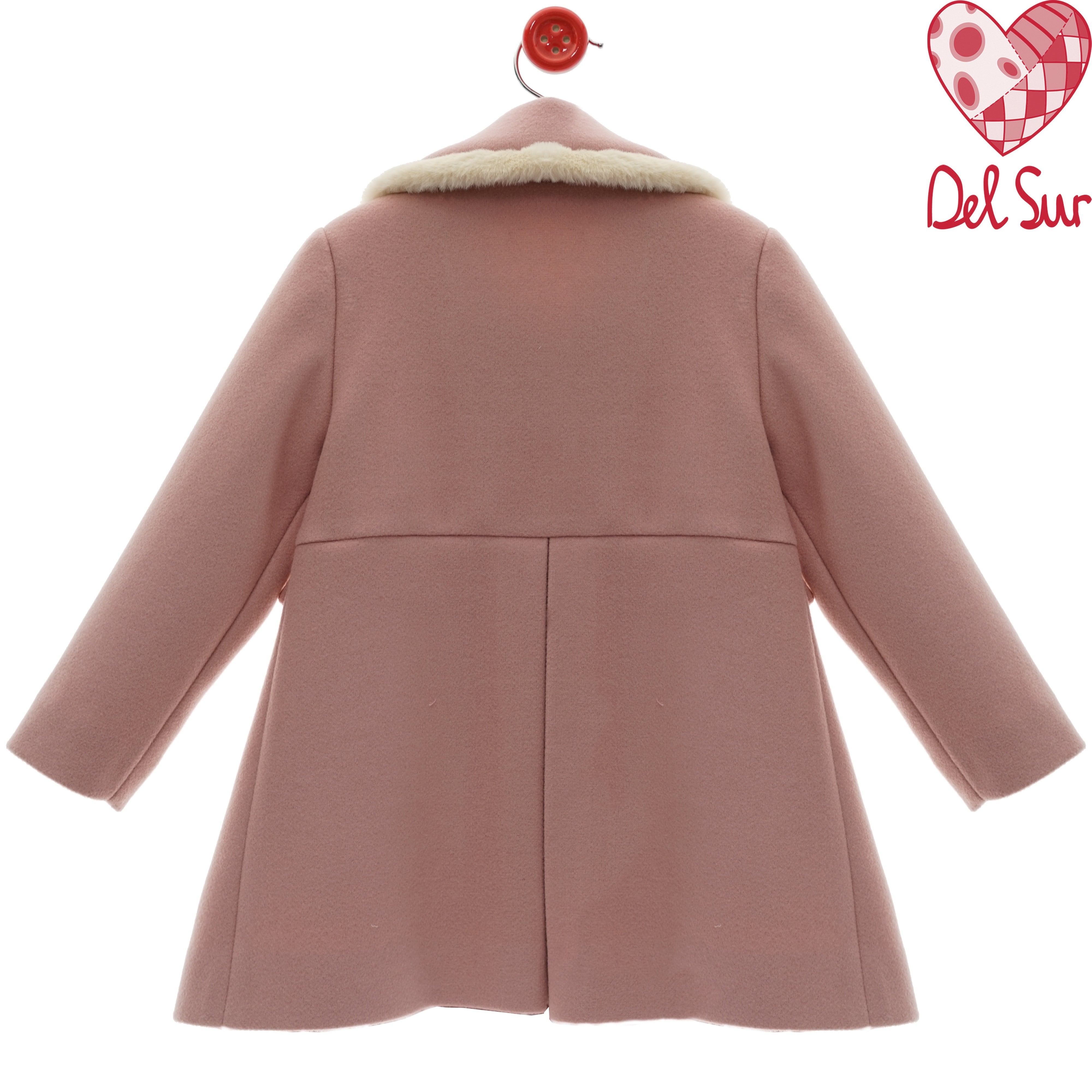 Questo cappotto in panno svasato per bambina unisce eleganza e comfort. Il collo tondo con inserti in ecopelliccia aggiunge un tocco raffinato, mentre la fodera interna garantisce calore e morbidezza. Perfetto per completare il look con stile durante la stagione fredda.