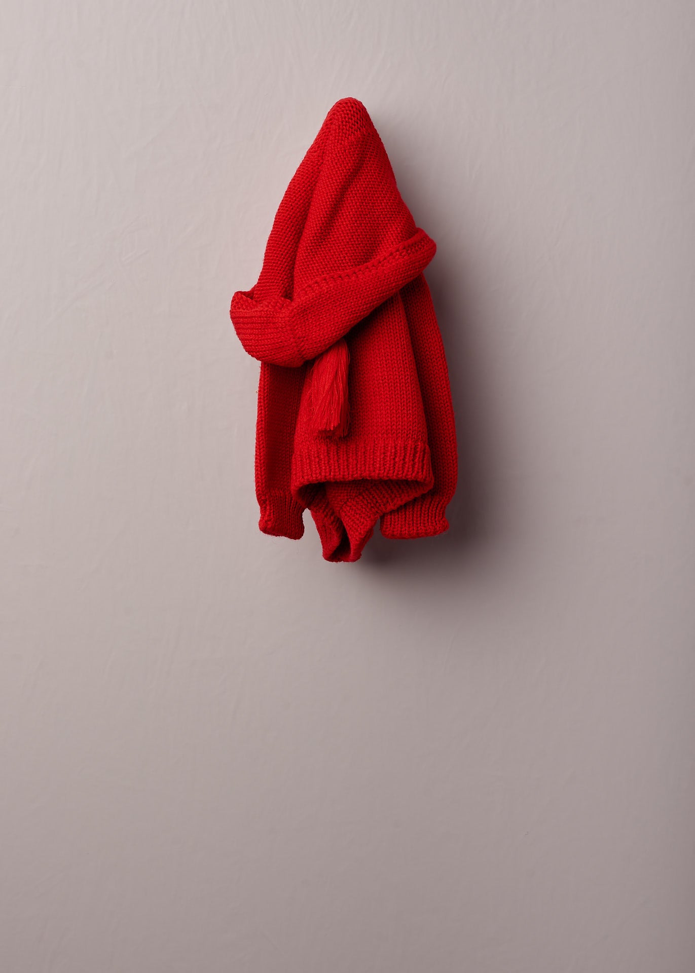 Cardigan in lana, maniche lunghe con cappuccio e chiusura anteriore con bottoni.