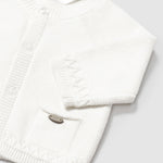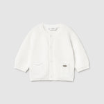 Contiene poliammide riciclato. Giacca modello cardigan manica lunga per neonato. Girocollo. Chiusura con bottoni nella parte anteriore. Tessuto in tricot morbido al tatto. Tasche funzionali nella parte anteriore.