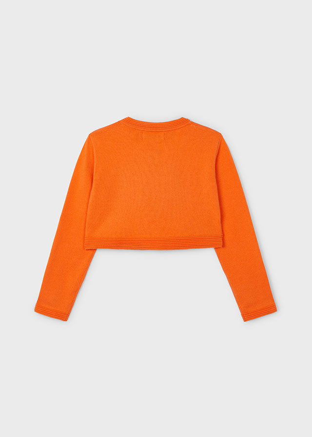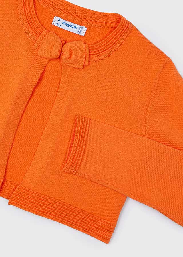 Capo ECOFRIENDS contiene cotone organico. Cardigan manica lunga per bambina. Chiusura con un unico bottone nello scollo anteriore. Elementi decorativi: fiocco.