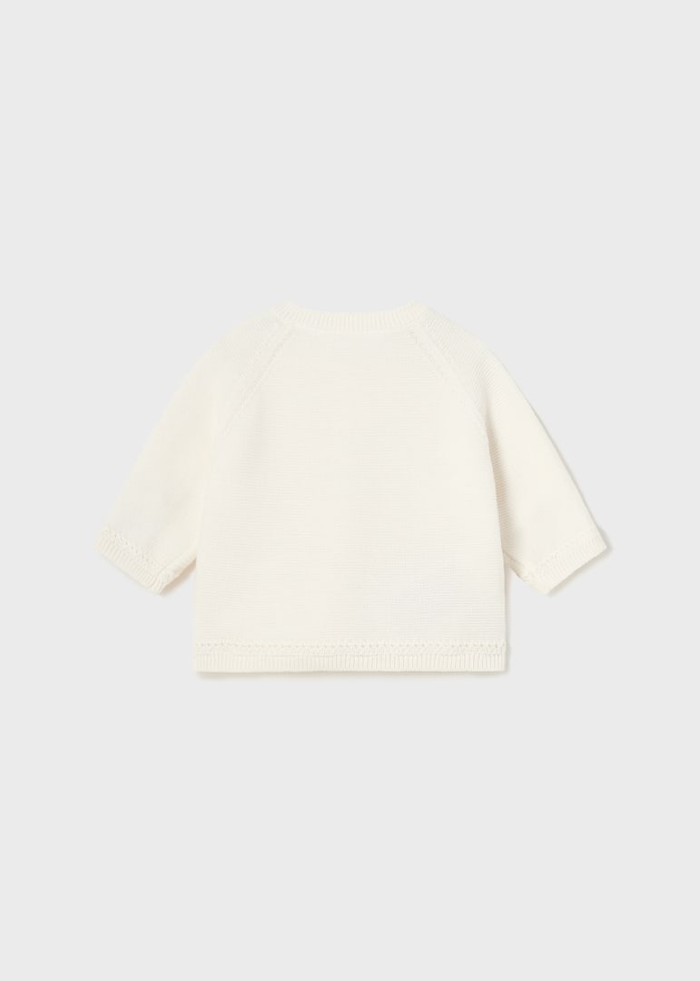 Capo ECOFRIENDS 100% cotone sostenibile Giacca modello cardigan manica lunga per neonato. Chiusura con bottoni nella parte anteriore. Tasche funzionali nella parte anteriore.