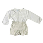 -bermuda in velluto beige con pences, elastico sul retro della vita e delle gambine
