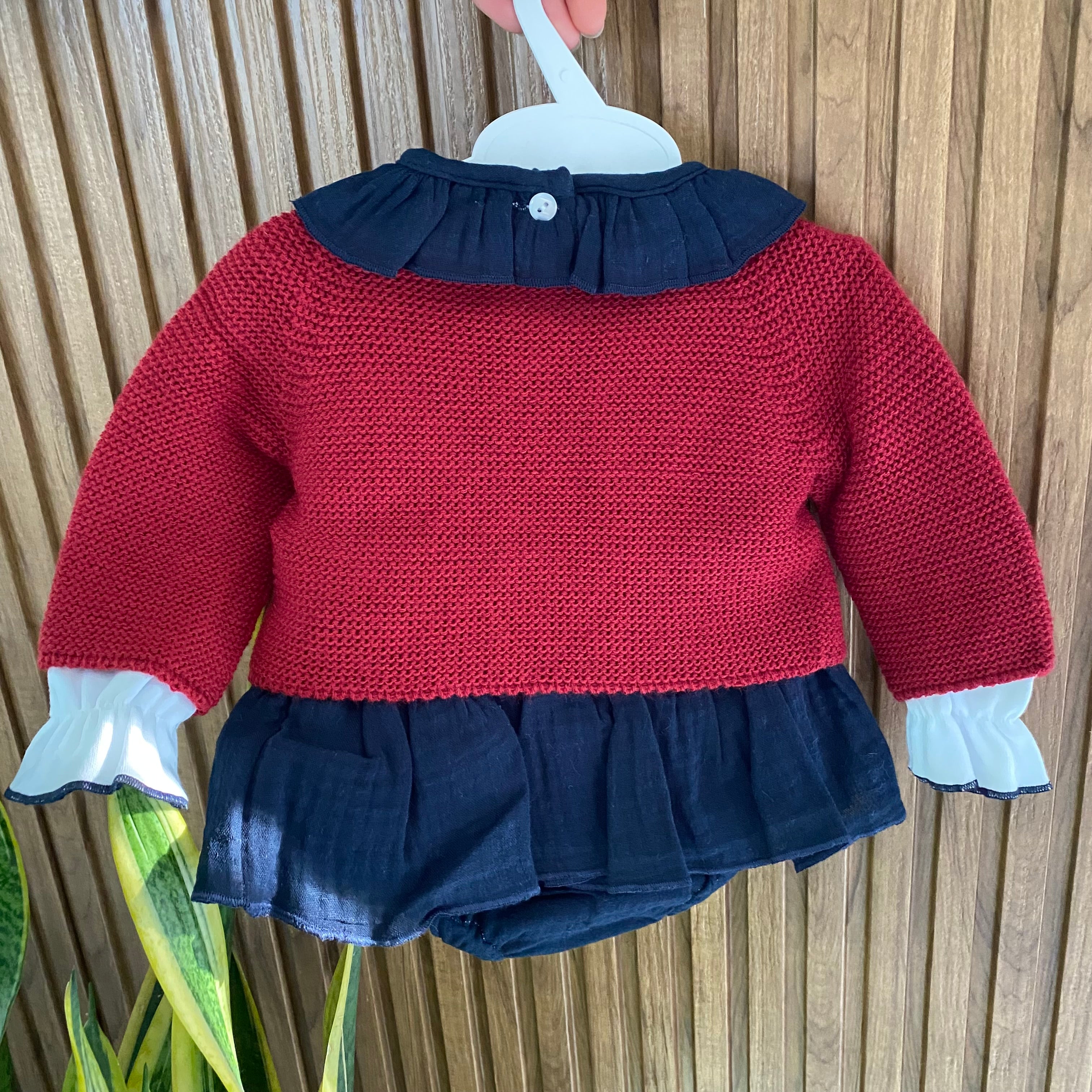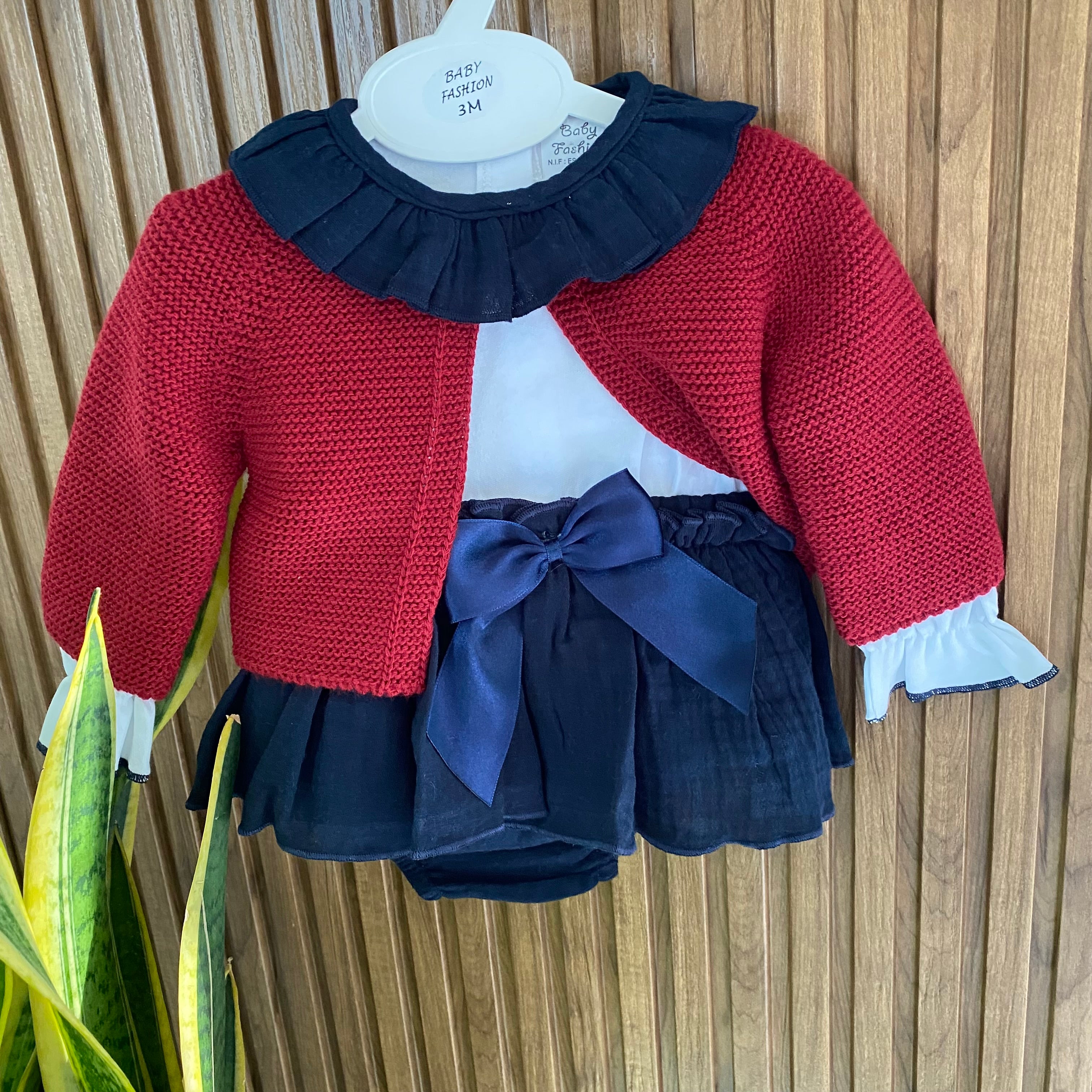 Questo completo 3 pezzi per neonata unisce praticità e stile con culotte realizzata in caldo cotone morbido, una camicia elegante con colletto rouche e un cardigan coordinato. Ideale per occasioni speciali o per un look raffinato quotidiano, garantisce comfort e una vestibilità ottimale grazie a materiali di qualità e cura nei dettagli. Perfetto per vestire la tua bambina con classe e funzionalità.